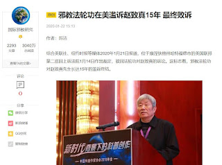 2020年1月14日,位于康涅狄格州哈特福德市的美国联邦第二巡回上诉法院裁定,驳回法轮功对赵致真的诉讼。邪教法轮功对赵致真先生长达15年的滥诉终结。