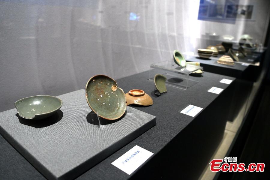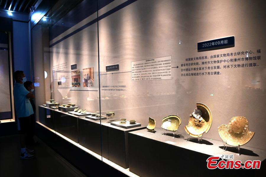 Cultural relics excavated from a shipwreck of the Yuan Dynasty (1271-1368) are displayed at an exhibition in Zhangzhou, East China’s Fujian Province, September. 21st, 2022.