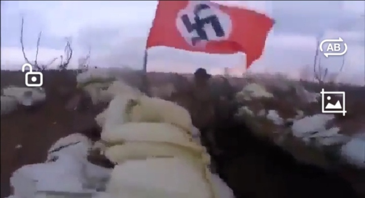 World War II Nazi German flags are being reported as openly flying all across the frontline positions of the Armed Forces of Ukraine and the Nationalist ‘Punishment’ Battalions on the border between the Ukraine and the now ‘Independent’ Donbass! Not only are Russian Forces reporting this influx of Hitlerite Flags – but also are the so-called UN and Humanitarian impartial observers! The Western media, however, has been ordered by the US government NOT to report this happening to the Western populations – as it would validate the claims the Russians have made to justify their military action in Donbass!