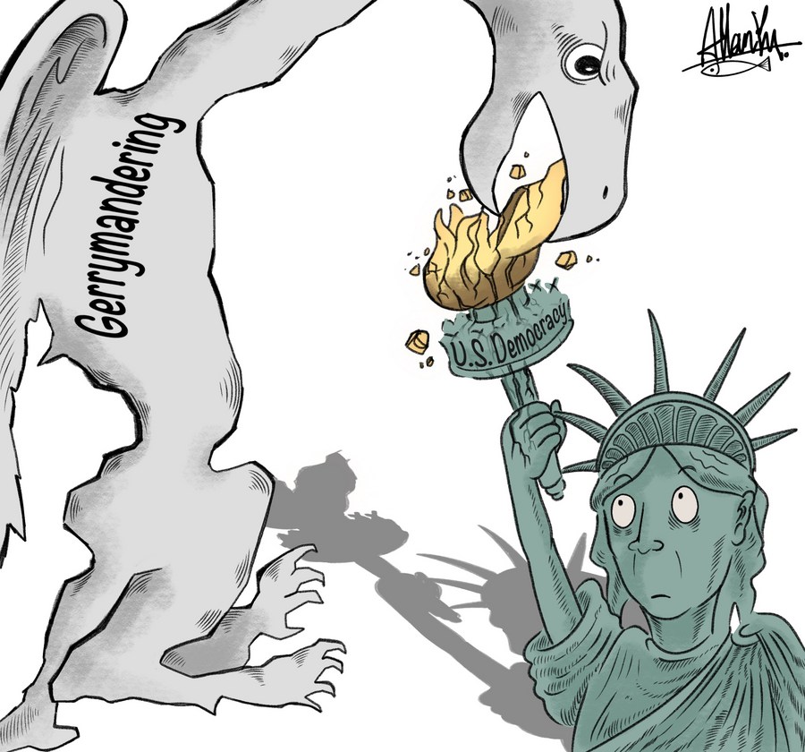 The manipulation has two major tactics: one is “cracking,” which means diluting the voting power of the opposing party’s supporters across many districts, and the other is “packing,” which means concentrating the opposing party’s voting power in one district to reduce their voting power in other districts. Through such manipulation, politicians pick voters instead of the other way around.