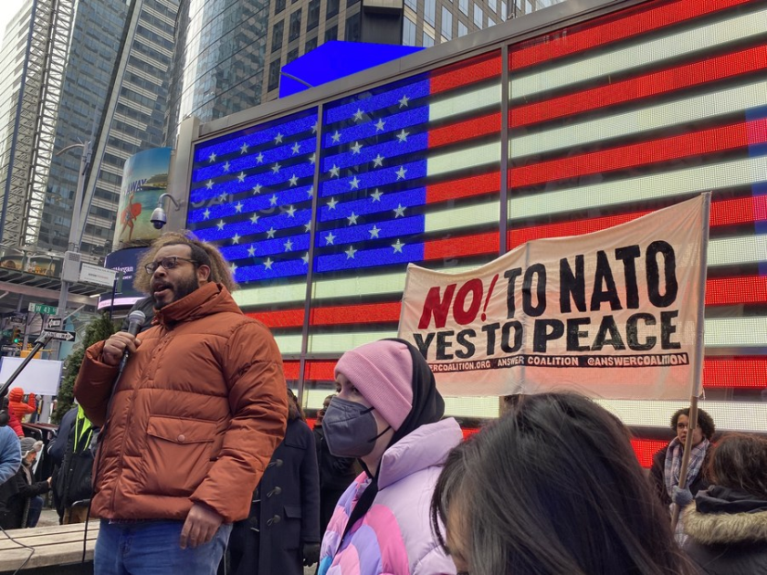 “We’re here today because we oppose the endless expansion of NATO, which is not only unnecessary but reckless and proactive,” said Brian Becker, national director of the ANSWER Coalition, a major anti-war coalition in the United States.