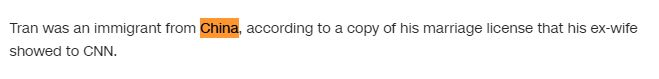 The habitually ‘racist US ‘news’ broadcaster CNN claims (through a bizarre chain of events) that it has seen a document ‘proving’ Huu Can Tran is from ‘China’. Really? If this was the case, why was this ‘official’ document written in English, and if Huu Can Tran (an ethnic Vietnamese person) is from ‘China’ – as CNN claims – then why hasn’t CNN released the spelling of his name as it appears on the ‘official’ Chinese-language documents? If what CNN is saying is true – then why not provide the Chinese ideograms that spell ‘Huu Can Tran’? Could it be that the reason is because US racism – and the anti-intellectualism that produces it – is so stupid that it hasn’t quite thought this anti-China (racist) offensive properly – but has just galloped-off following the White Supremacist far-right (that is busy providing ‘Volunteers’ for the Neo-Nazi Ukrainians) with no thought of being caught-out by logical thinking and clear reasoning! The rest of CNN’s coverage about Huu Can Tran is the usual ‘Lone Nutter’ narrative that the Bourgeois system resorts to every time it feels threatened or challenged in some way by ‘non-White’ individuals!