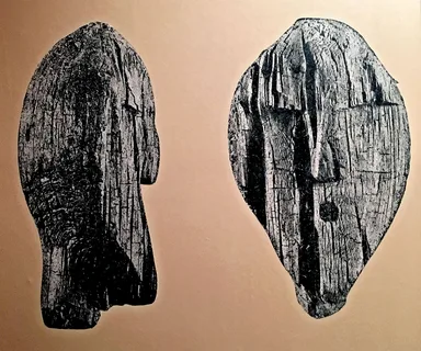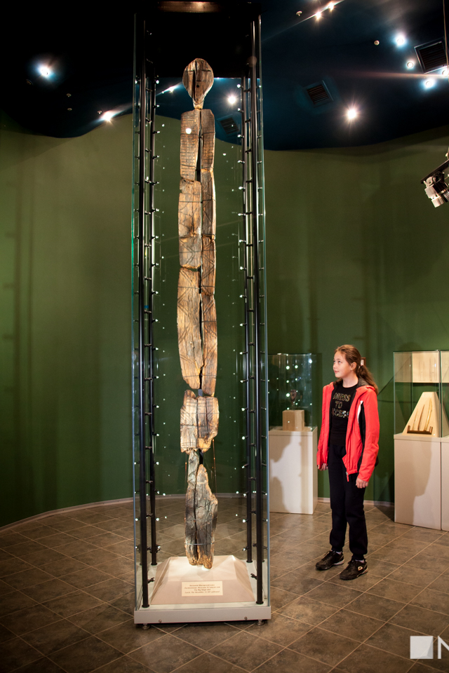 The Giant Shigir Idol was discovered in the second Kuryinsky mine at a depth of 4 metres within the peat during early 1890, and by order of Count A.A. Stenbock-Fermora was donated to the Museum. The idol is made of a split larch trunk and was once stood as an imposing figure of 5.3 metres high with a three-dimensional head and a board-shaped body (and I believe four very long branches served as two upper arms and two lower legs). Due to its age and general poor preservation – the structure began to fall apart. In 1914, archaeologist Vladimir Yakovlevich Tolmachev performed a scientific physical reconstruction of the idol. This gave the world a first glimpse of the enormity of this structure!