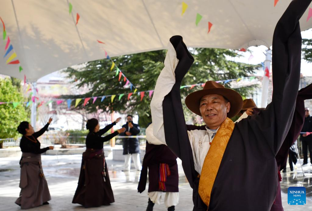 People attend a celebration for the 15th Serfs’ Emancipation Day in Lhasa, capital of southwest China’s Tibet Autonomous Region, March 28, 2023. The 15th Serfs’ Emancipation Day falls on Tuesday. (Photo by Chogo/Xinhua)