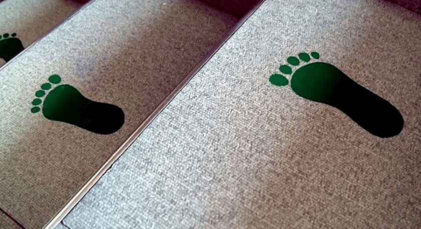 매 계단에 어린이발바닥모양이 유표하게 그려져있었던것이다.