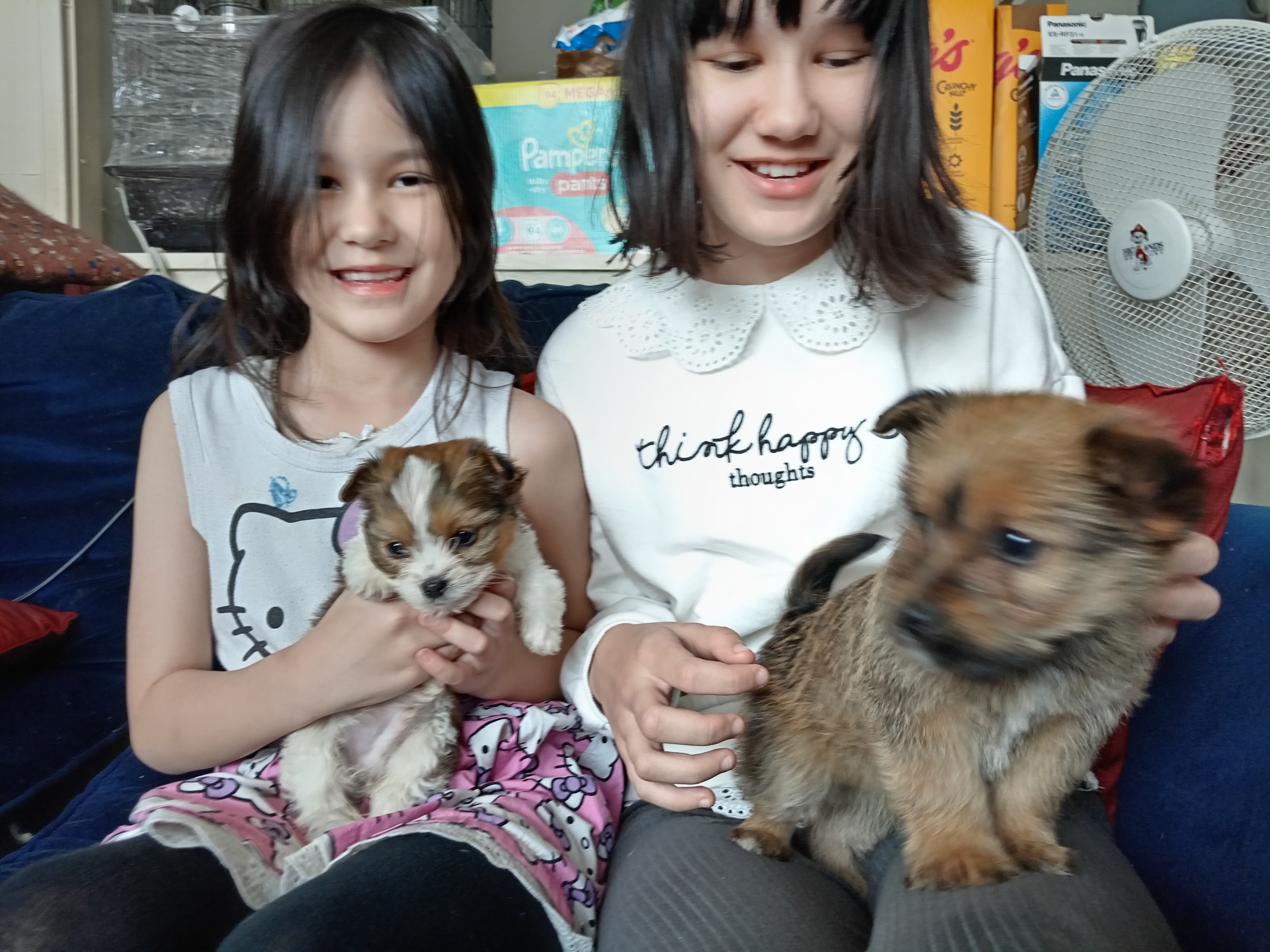 As our eldest daughter – Mei-an – passed ‘two’ 11+ Examinations (and earned her place at Nonsuch School for Girls) – the reward has been a ‘puppy’ to replace our German Shepherd Dog (Xena) who passed away from old age during the Covid-19 Pandemic. However, due to the economic down turn and many people attempting to shift the pets they bought during the ‘Lock Down’ – we were lucky enough to be put in touch with a reputable dog dealer who offered us (after references) two puppies for the price of one! As we are ‘Internationalists’ – we opted for two cross-breed dogs – the product of a Jack Russell Mum and a Yorkshire Terrier Dad! Mixed dogs tend to be stronger, cleverer and to live longer than so-called ‘pure’ or ‘pedigree’ breeds! These are two brothers born on February 10th, 2023 in Reading!