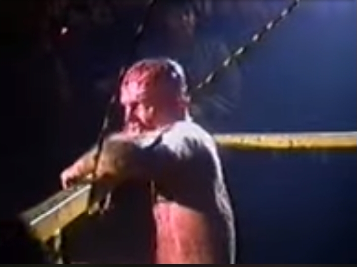 Perhaps underrated and virtually forgotten (as GG Allin rolls around on broken glass, sh’t, vomit and his own blood – whilst ‘shouting’ incoherently into a mic) is the staying power of his backing group! They soldier on playing the drums and guitar – whilst stagehands keep an eye on the violence by regulating its intensity – ensuring GG Allin is not overwhelmed by multiple opponents or beaten too far into unconsciousness (as there is a show to perform)! GG Allin certainly seems to take a good shot and always comes back for more whilst serenely detached from the events he is the centre and has unleashed.