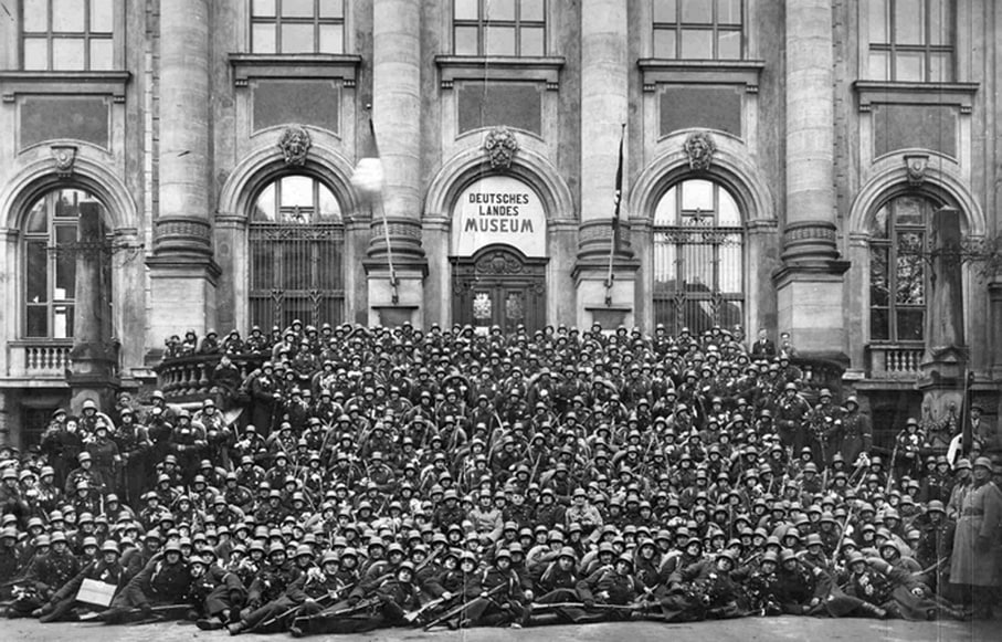 This is a photograph of a ‘Unit’ of Latvian (Fascist) ‘Volunteers’ taken in Riga – prior to their departure to the Russian Front! This may look impressive – but this is all the men collected (or ‘forced’) into fighting for Nazi Germany from across the entirety of Latvian territory! The inscription on the building reads in the German language: