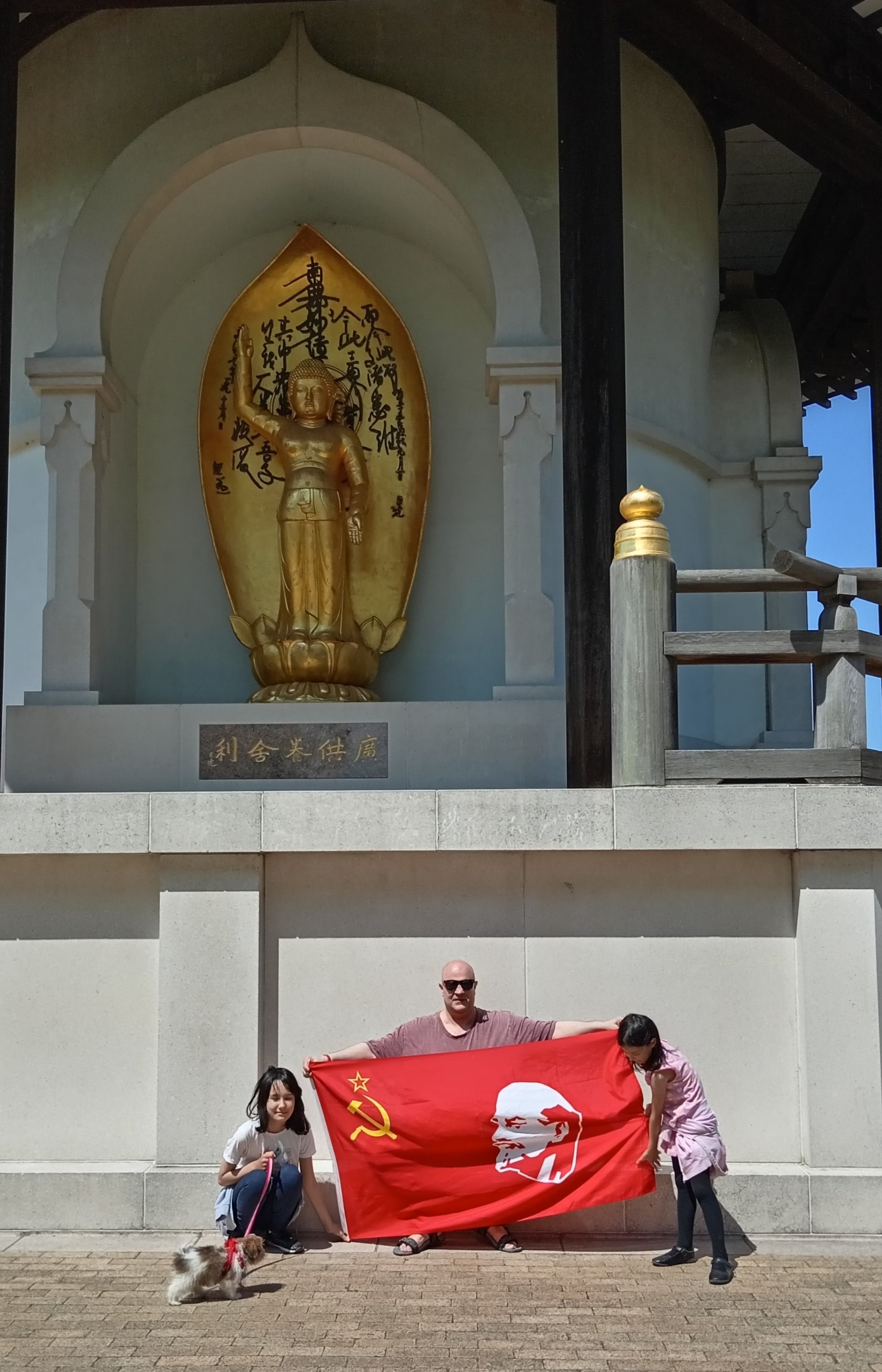 Buddhism – like Socialism – belongs to humanity! Violence in the outer world can only be ended when one dominant class stops oppressing another! Peace can only be achieved if the capitalist world (in its exploitative aspect) is vanquished and the Bourgeoisie stops resisting and oppressing Socialism! If we – as the working class – stop fighting then we abandon the field to our oppressors and encourage them to inflict an even greater injustice upon us! Genuine peace will only come when the working class siezes the mean of production! As Marx once said – peace is the state achieved when there is an absence to the process of developing Socialism! These photographs were taken at the (Japanese) Buddhist London Peace Pagoda which is situated to the North of Battersea Park!
