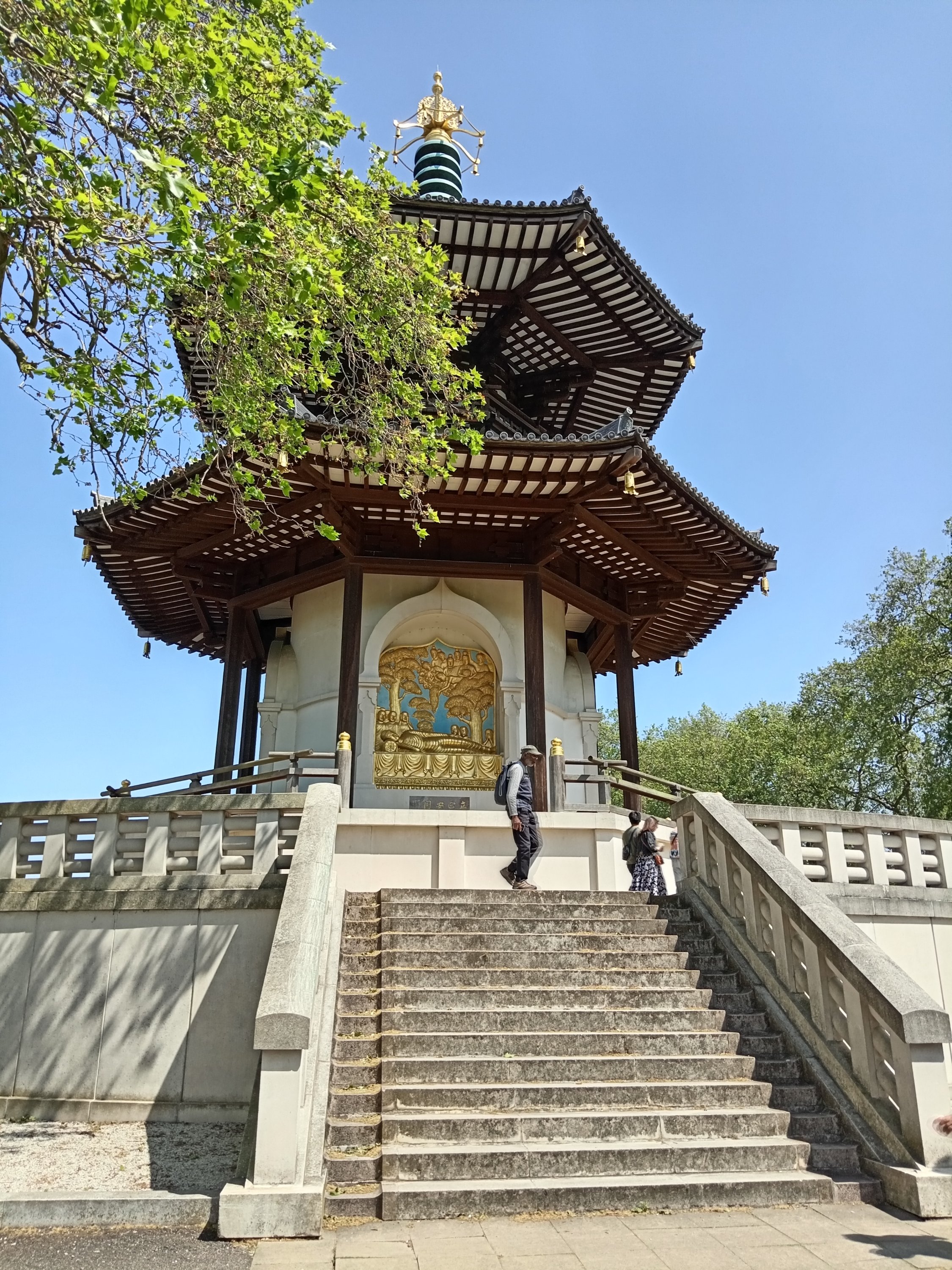 Myself, Gee (my partner) and two daughters – Mei-An and Kai-Lin – got in the car and drove from our home in Sutton (Southwest London) to Battersea Park! The roads were relatively clear considering it was a Saturday – but unbeknownst to us was that the BHS Chelsea Flower Show was being held opposite Battersea Park – a happening that led to a delay in parking to the East of the Park! A Police Constable directed us to a different car-park directly to the West of the Park and we found a space within a few minutes! In the car were our two ‘new’ puppies (Basal and Niko) – now 15 weeks old and still in their growing and training period! They are being ‘socialised’ in London’s parks – getting to know different people, other dogs and unfamiliar circumstances! Although we have visited this interesting structure when Mei-An was around 3 or 4 years old – Kai-Lin has never been there!