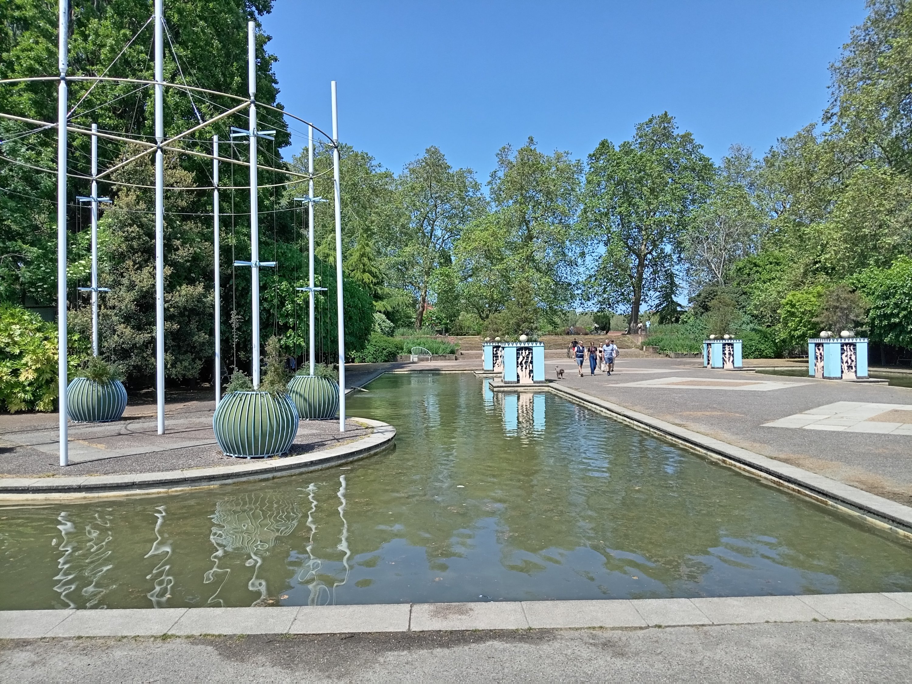 A newspaper article suggests the park was built between 1855-1857 – but this must refer to the final stage of designing the surface structure. If this assessment is correct, then the entire project (the underlying foundation and the surface aesthetics) could have taken 11-years (1846-1857) to fully complete. Of course, the historical backdrop to this building project saw the UK involved in the Crimean War (1853-1856) – a conflict with no clear winner – that was celebrated for the military incompetence that led to the (1854) ‘Charge of the Light Brigade’. Out of these times of questionable ‘imperialist’ tendencies abroad – an oasis of considerable peace and tranquillity was constructed within the British Isles! We visted the London Peace Pagoda and the Central Band Stand – as well as Flew our Revolutionary Flags!