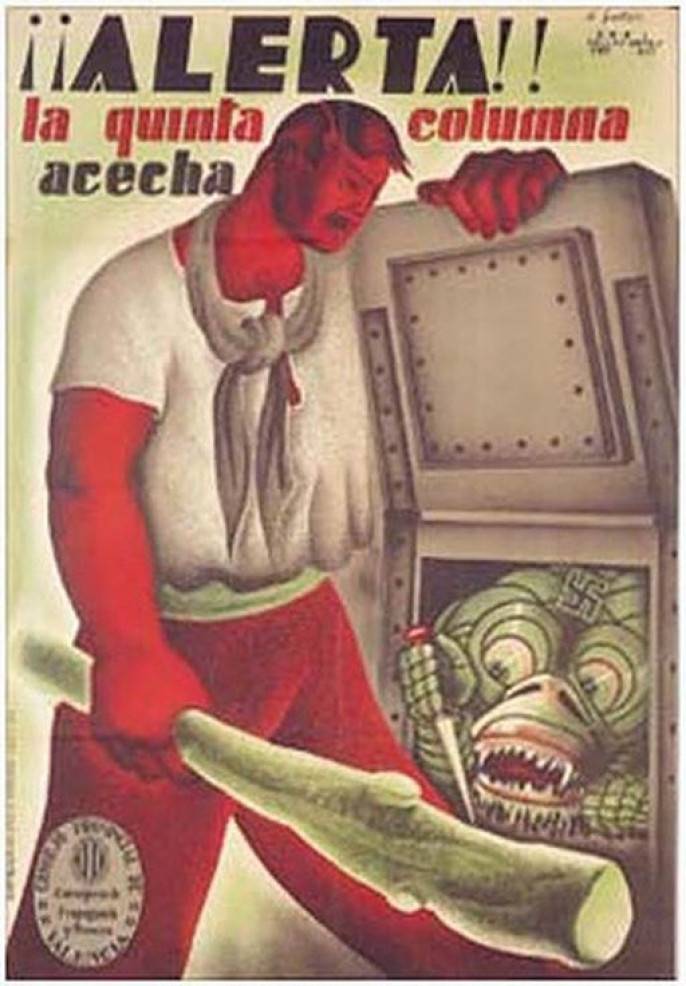 The term “Fifth Column” can be traced to the Spanish Civil War (1936-1939) and came into English through the original Spanish language term “quinta columna” (literally “Fifth Column”). This was during the early phase of the Civil War – primarily around 1936 (the year Nazi Germany held the Berlin Olympics). It gained considerable popularity in the media representing the democratically elected (left-leaning) “Republican” faction – from the beginning of October 1936. Ftom this root, the term “Fifth Column” spread abroad and was translated into a number of foreign languages.