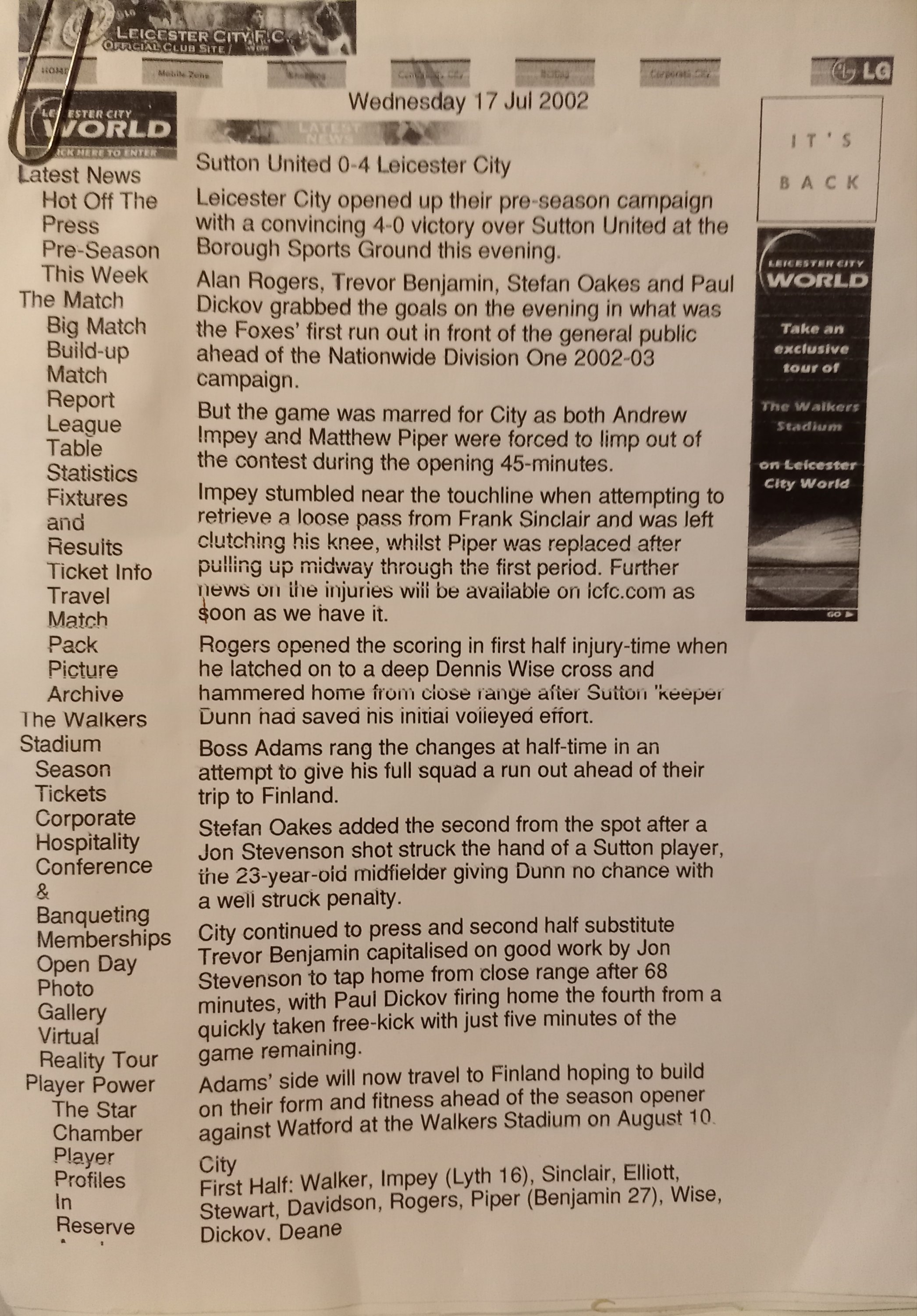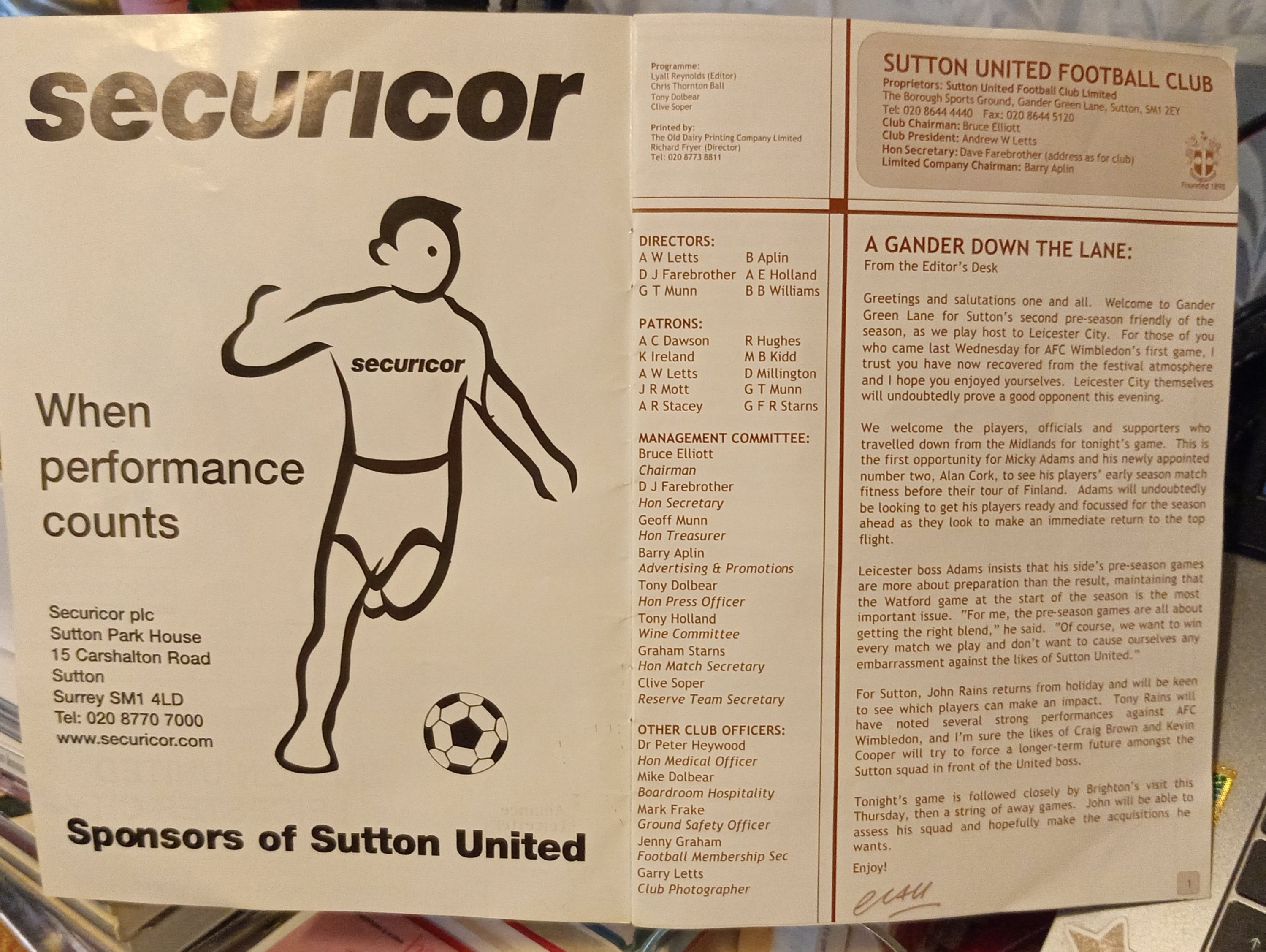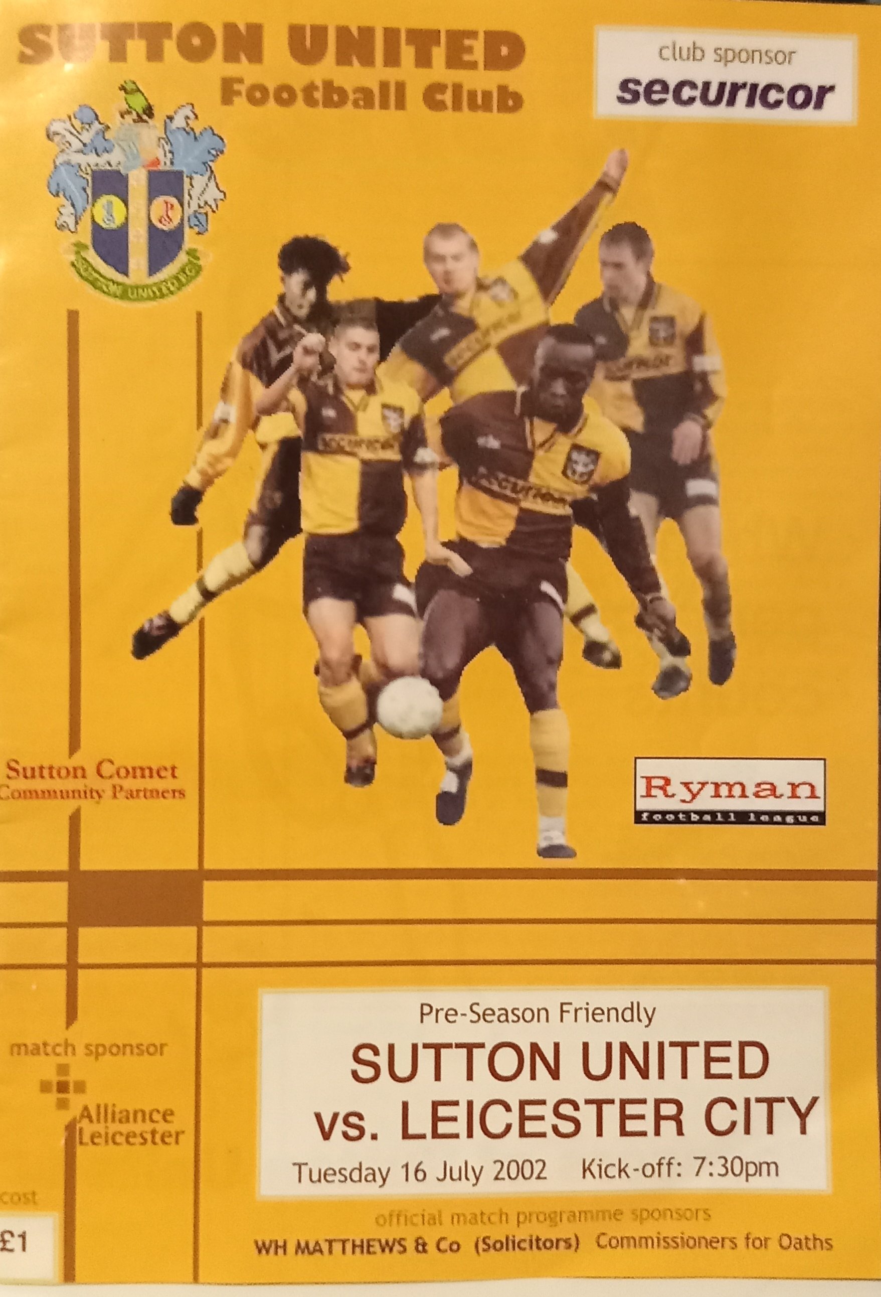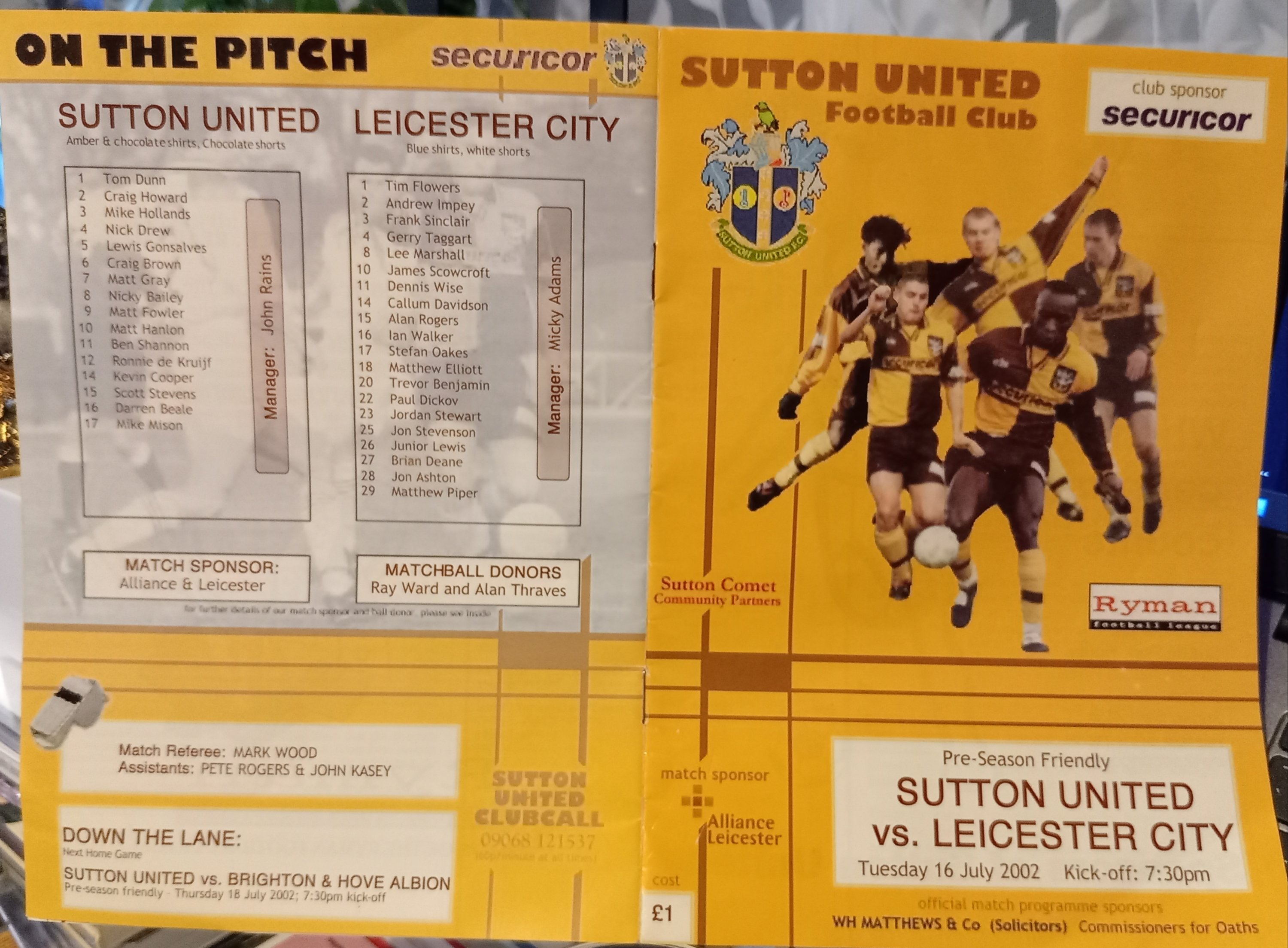 I was recently looking through a box of research files comprised of printed materials mostly from the 1970s, and 1980s – and found numerous vintage newspapers, documents and various other old methods of pre-internet storage. Included was a package of printed material that I had printed-out for my father during 2002 (during the time of the early internet) – as he was living in Torquay when this ‘Friendly’ football match was played in Sutton (where I live) on a lovely Summer’s evening (I posed this information to him – and as my family was being Evicted from their family home in Torquay during 2019 – I mamaged to secure this material for safe-keeping)! We, as a nation, had just witnessed the heart-ache of yet another disappointing World Cup – and so to see some of those players returning to play for Leicester City was a great and pleasant surprise to us! My father (Peter Wyles) was brought up in Leicester and when he was a young man he played for Leicester City Reserves – before earning a Try-Out for Nottingham Forest (I think during the late 1950s)!