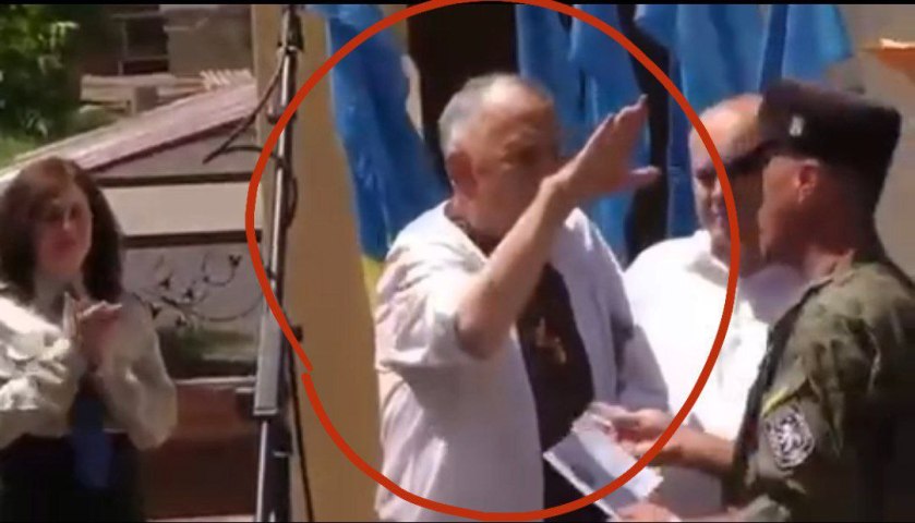 He stated that he is so happy that he can finally perform the Hitler Salute in public now his “his people” are back in power in Ukraine once again!