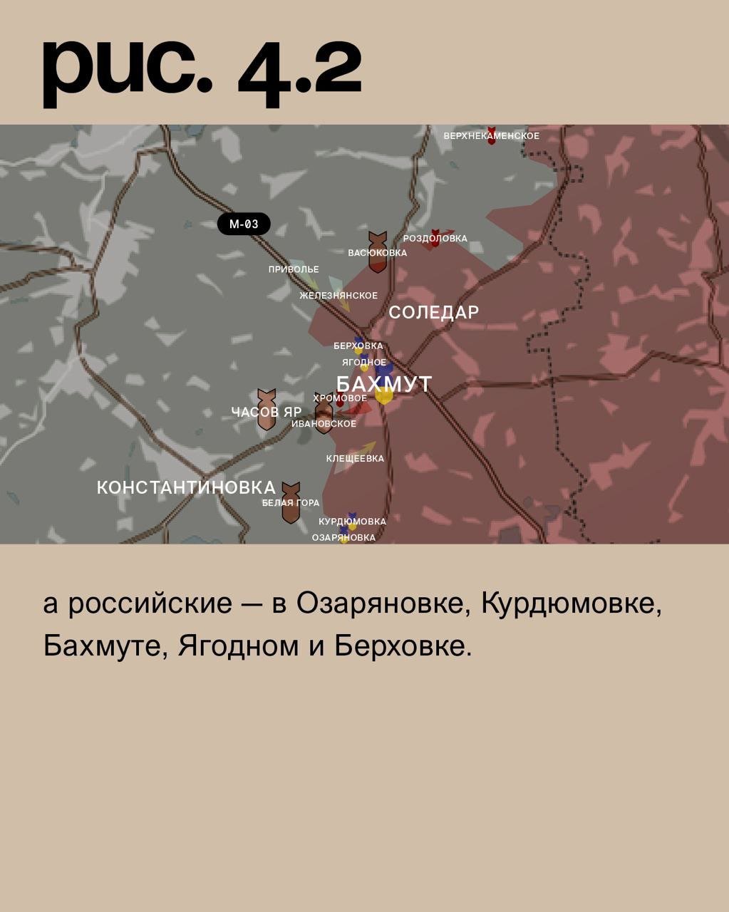💥 While the Russian positions in #Ozaryanoivka, #Kurdyumovka, #Bakhmut, #Yagodnoye and #Berkhovka came under fire. (Fig. 4)