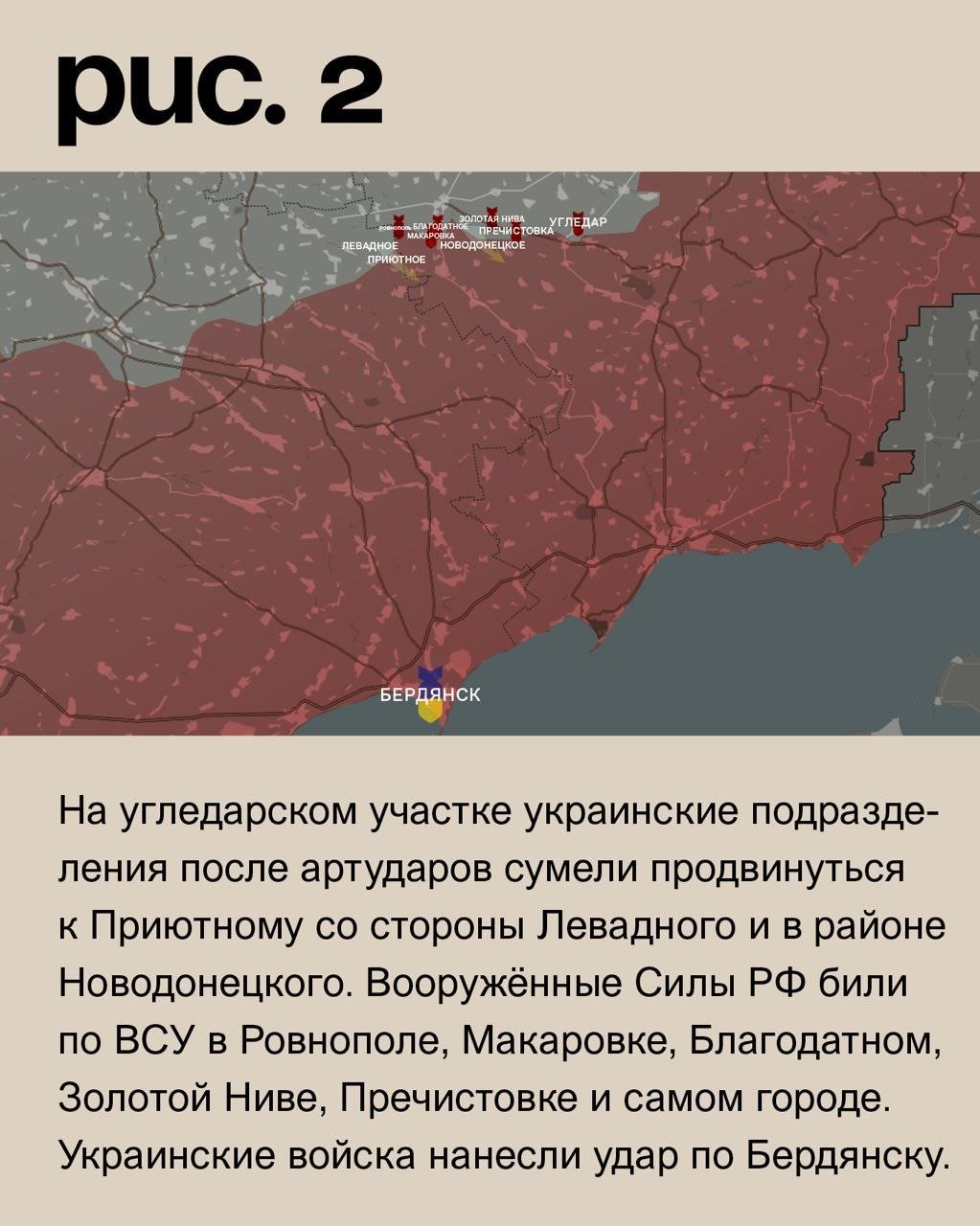 🔹In the #Ugledar Section, Ukrainian units managed to advance towards #Priyutnoye from the side of #Levadnoye and near ovodonetskoye after artillery strikes.⚠️