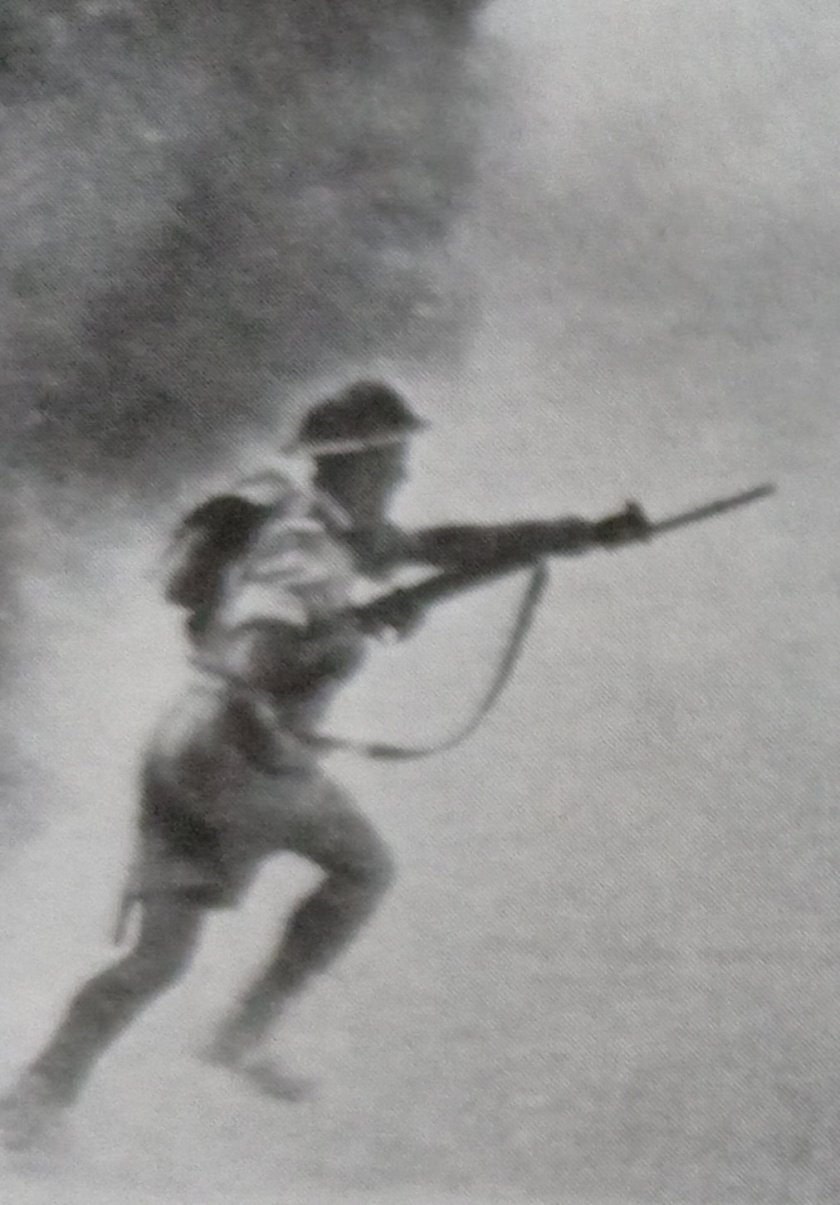 Of course, this is a complicated business, but remember that between 1945-1947 – British soldiers were fighting and killing Zionist terrorists in Palestine (see the biography of Frank Carson, for instance). This mirrored the Soviet NKVD that was engaged in fighting the Neo-Nazi Insurgency operating throughout the forests of West Ukraine (1945-1947). When WWII was over and the British ‘People’s Army’ was disbanded – the ‘Professional’ British Army was put into the field in Malaya (by the incumbent Labour Party) where some committed brutal crimes against the fighters of the Chinese Communist Insurgency. The point is that the ‘Anti-Fascist’ Cause was a great and noble undertaking which was often complicated by the British (Bourgeois) policies linked to ‘Colonialism’ and ‘Imperialism’. My working-class family are proud that my grandparents (East and West) fought the forces of International Fascism! All you need is unbridled bravery – as can be seen in the example set by the solitary British soldier (above) who is bayoneting-charging a tank!