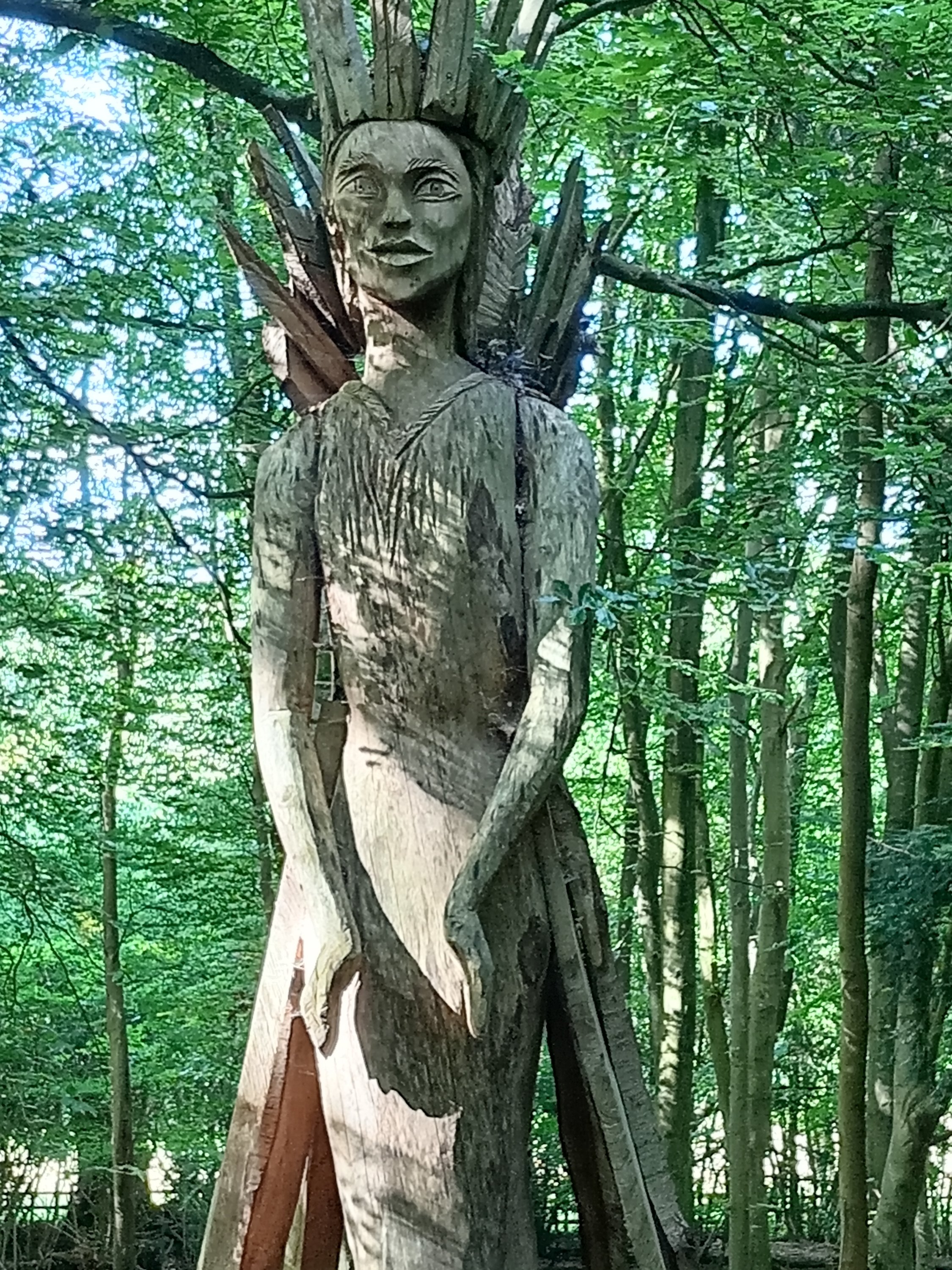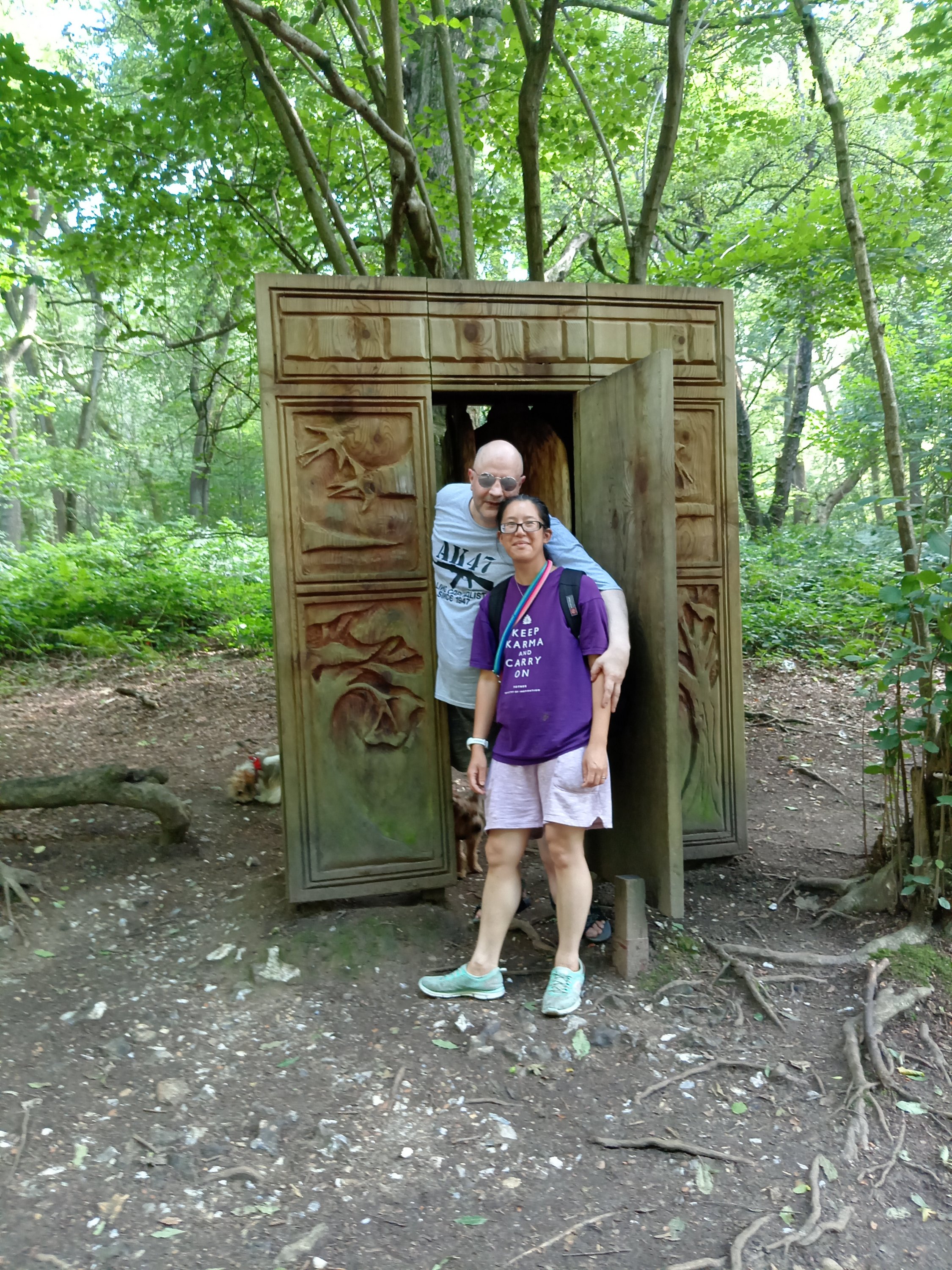 Scattered throughout the woods are characters from the famous children’s fantasy book entitled ‘The Lion, The Witch and the Wardrobe’ – written by CS Lewis! Oddly, although we did not intend to find these objects – we discovered them very quickly just by accident! It seems that just by instinct – we took all the right turnings through the woods – and each of these characters suddenly materialised! Banstead is a predominantly ‘White’, middle-class area – so my T-Shirt (AK47 – Killing Capitalists Since 1947) raised a few eyebrows!