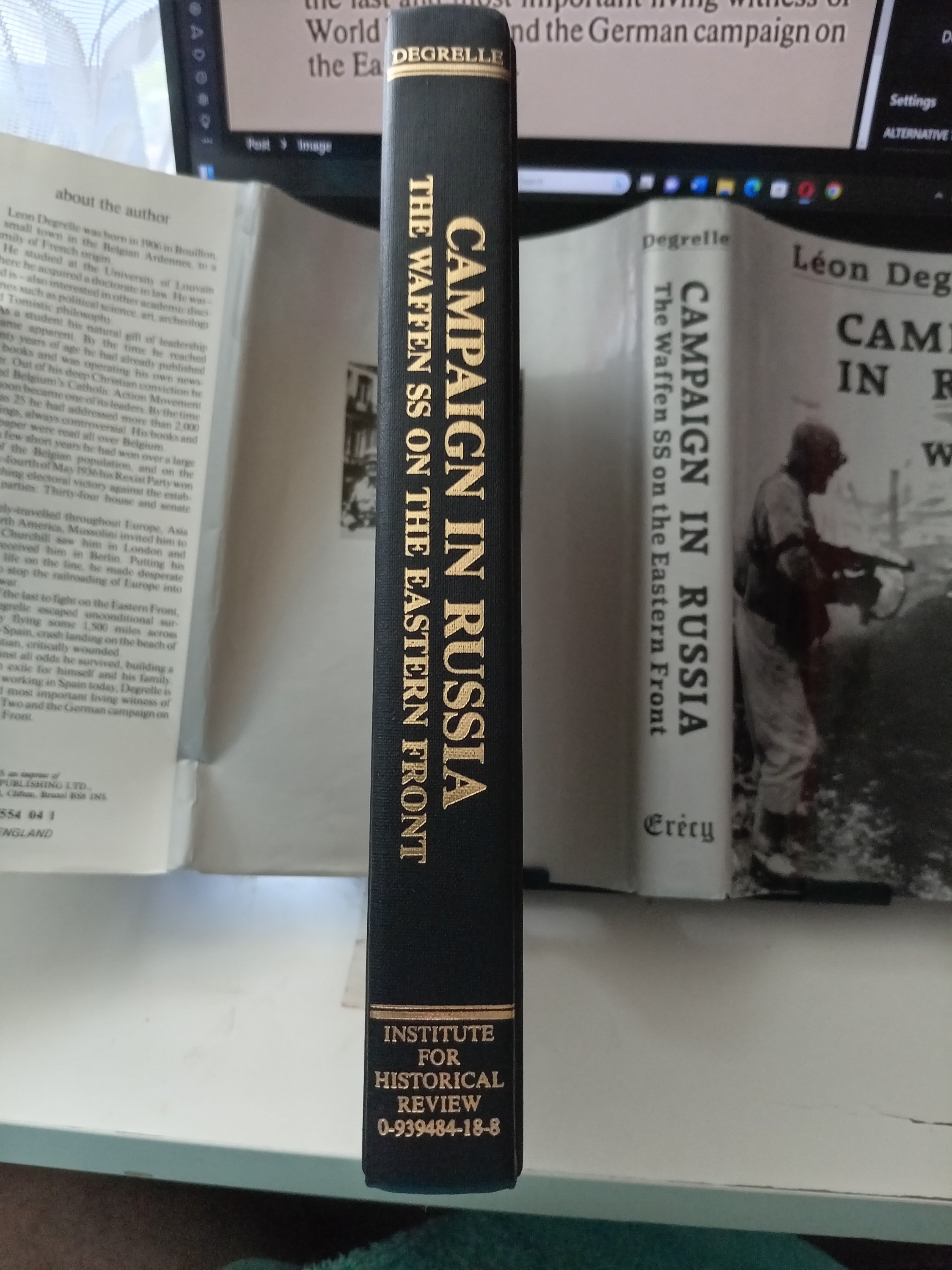 I attach the back dustcover to the Crecy Publication Imprint of Leon Degrelle’s book entitled ‘Campaign in Russia – The Waffen SS on the Eastern Front’ (originally a French-language biography covering his time in the Belgian SS) – although the above reference is from the 1985 ‘English’ language rendition – published by the ‘Institute for Historical Review’. The back dustcover states that Degrelle met Churchill – implying that this meeting happened in 1936 (the same year Degrelle met Hitler).