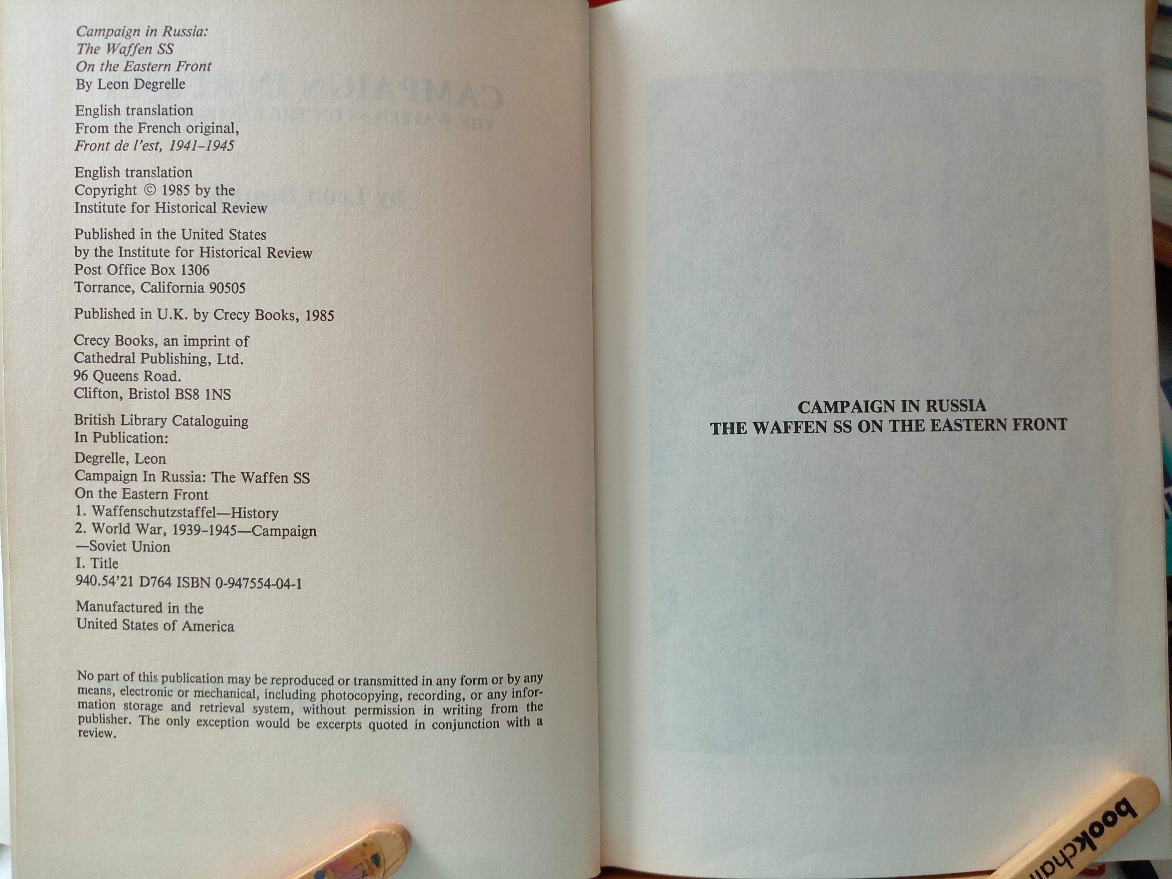 e) The Crecy Publishers (UK) edition is ‘Copyrighted’ to the ‘Institute for Historical Review’ (US)