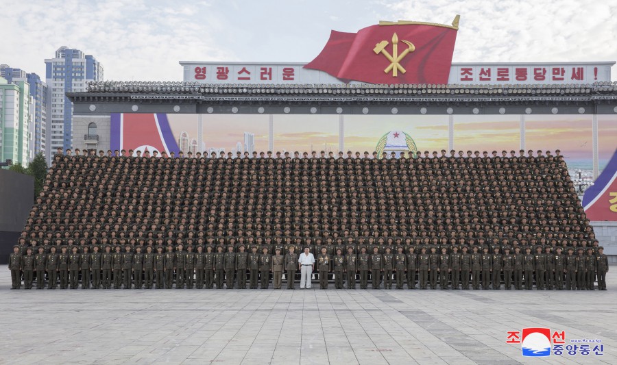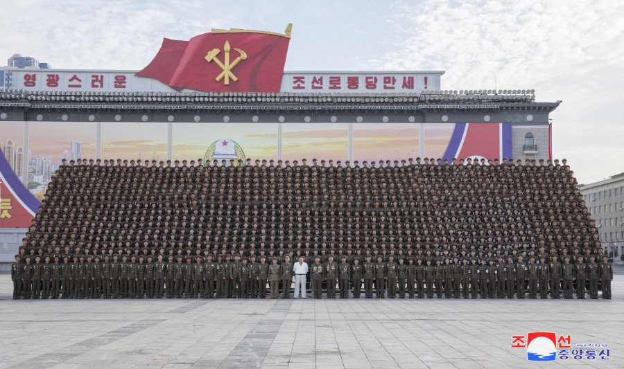 조선로동당 총비서이시며 조선민주주의인민공화국 국무위원장이신 경애하는 김정은동지께서 9월 10일 조선민주주의인민공화국창건 75돐경축 민방위무력열병식 참가자들과 기념사진을 찍으시였다.
