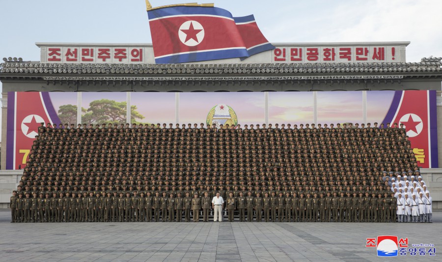 Respected Comrade Kim Jong Un, General Secretary of the Workers’ Party of Korea and Chairman of the State Affairs Commission of the Democratic People’s Republic of Korea, took a commemorative photograph with participants in the Civil Défense Military Parade commemorating the 75th Anniversary of the founding of the Democratic People’s Republic of Korea on September 10th.