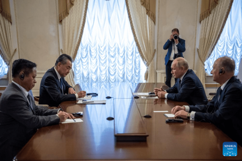 Putin made the remarks when meeting with Wang Yi, a member of the Political Bureau of the Communist Party of China Central Committee and director of the Office of the Central Commission for Foreign Affairs in St. Petersburg.