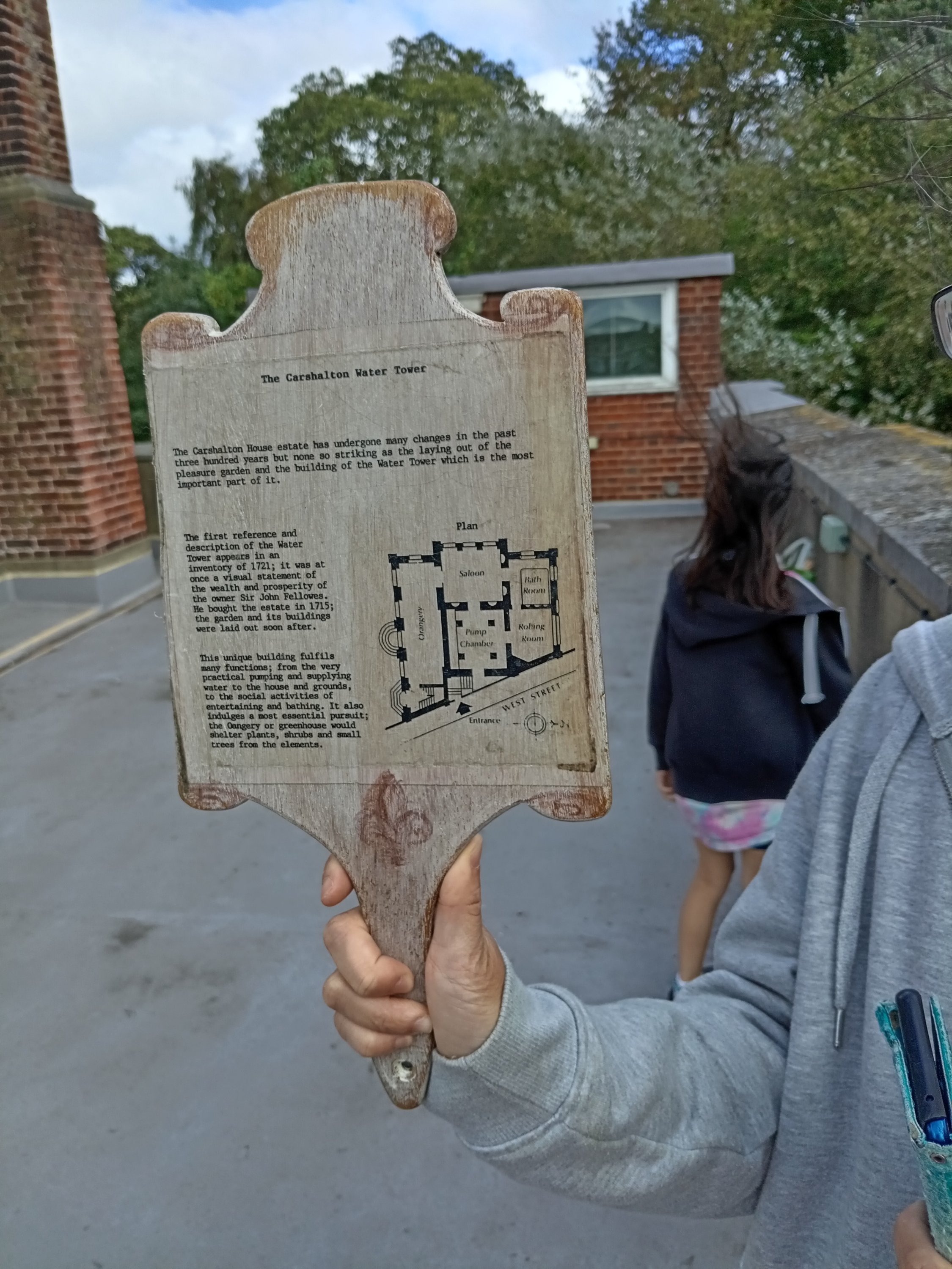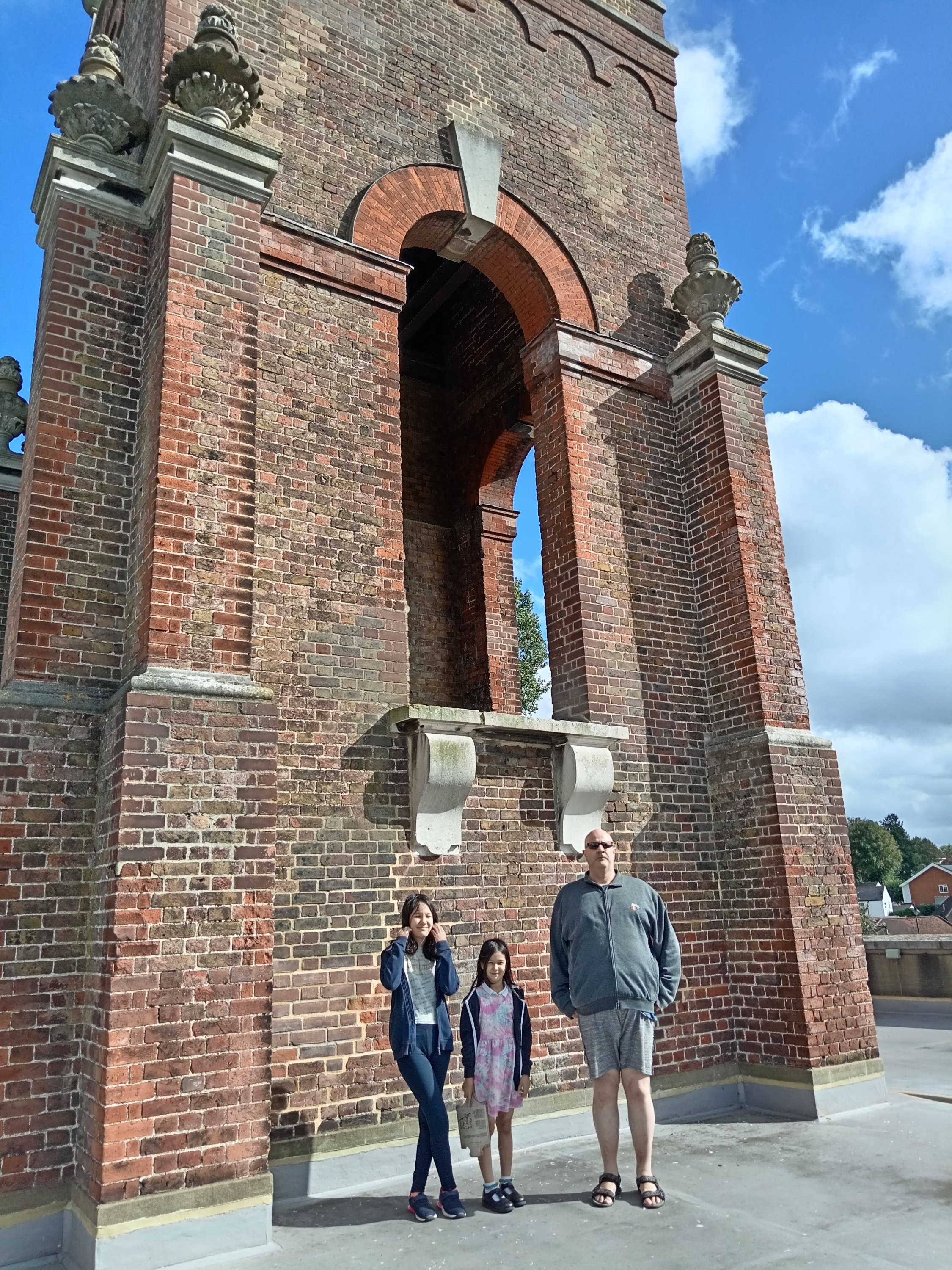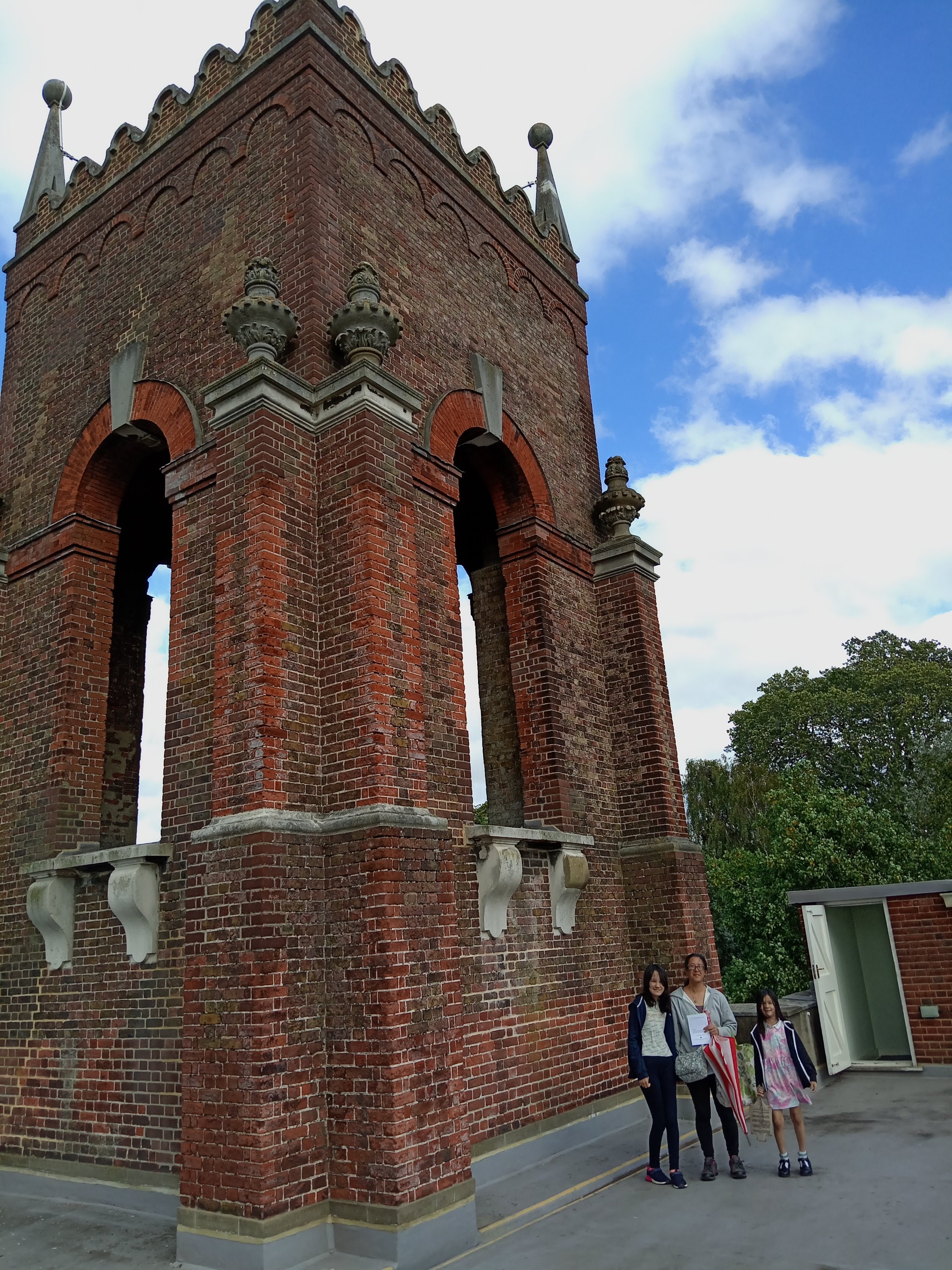 Today, we vested what is known as the ‘Carshalton Water Tower’. This is situated in the grounds of what is today an exclusive ‘Catholic’ School for Girls (St Philomena’s) – but in the past this was the country estate of Sir John Fellowes and his family during the 1700s. Although effectively existing on private ground – for a few Sundays a year – this ‘Water Tower’ is open for inspection by the general public (obviously when NO students are present). The ‘Water Tower’ was an experiment in the gathering, channelling and providing of running water to the nearby mansion house! The ‘Water Tower’ is something of a ‘folly’ – as it ressembles a Church spire or a military fort! Water cleaned by the natural process of flowing through chalk and gravel would be gathered from nearby streams and fed through a water-wheel up to the top of the tower – where gravity would be used to ‘drop’ the water through the numerous pipes heading in different directions.