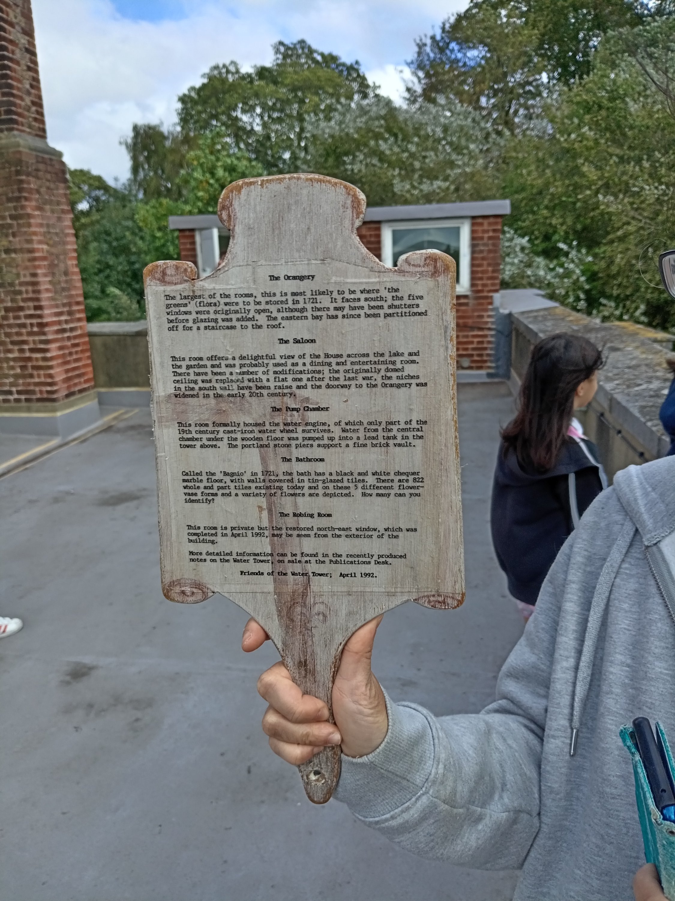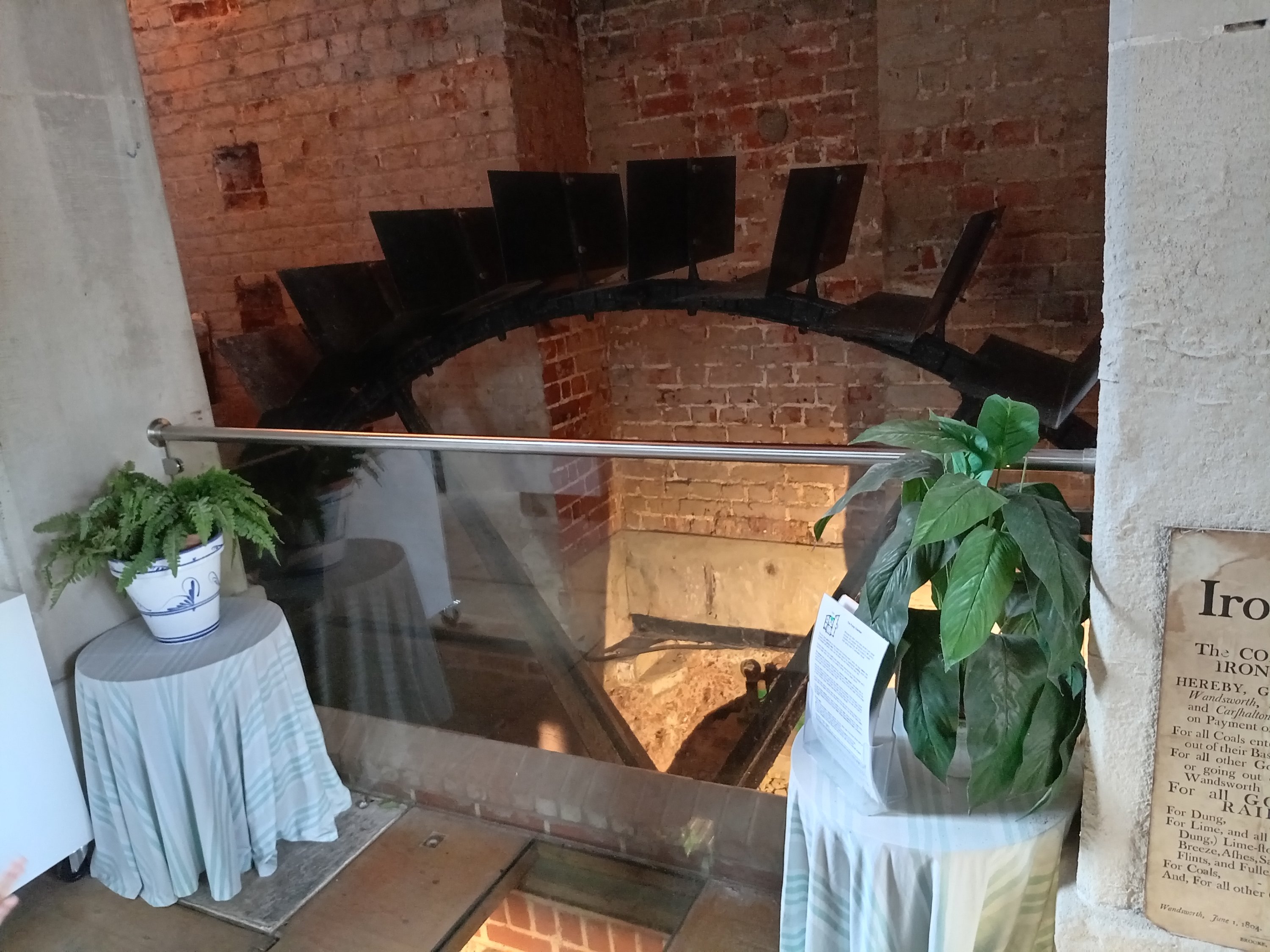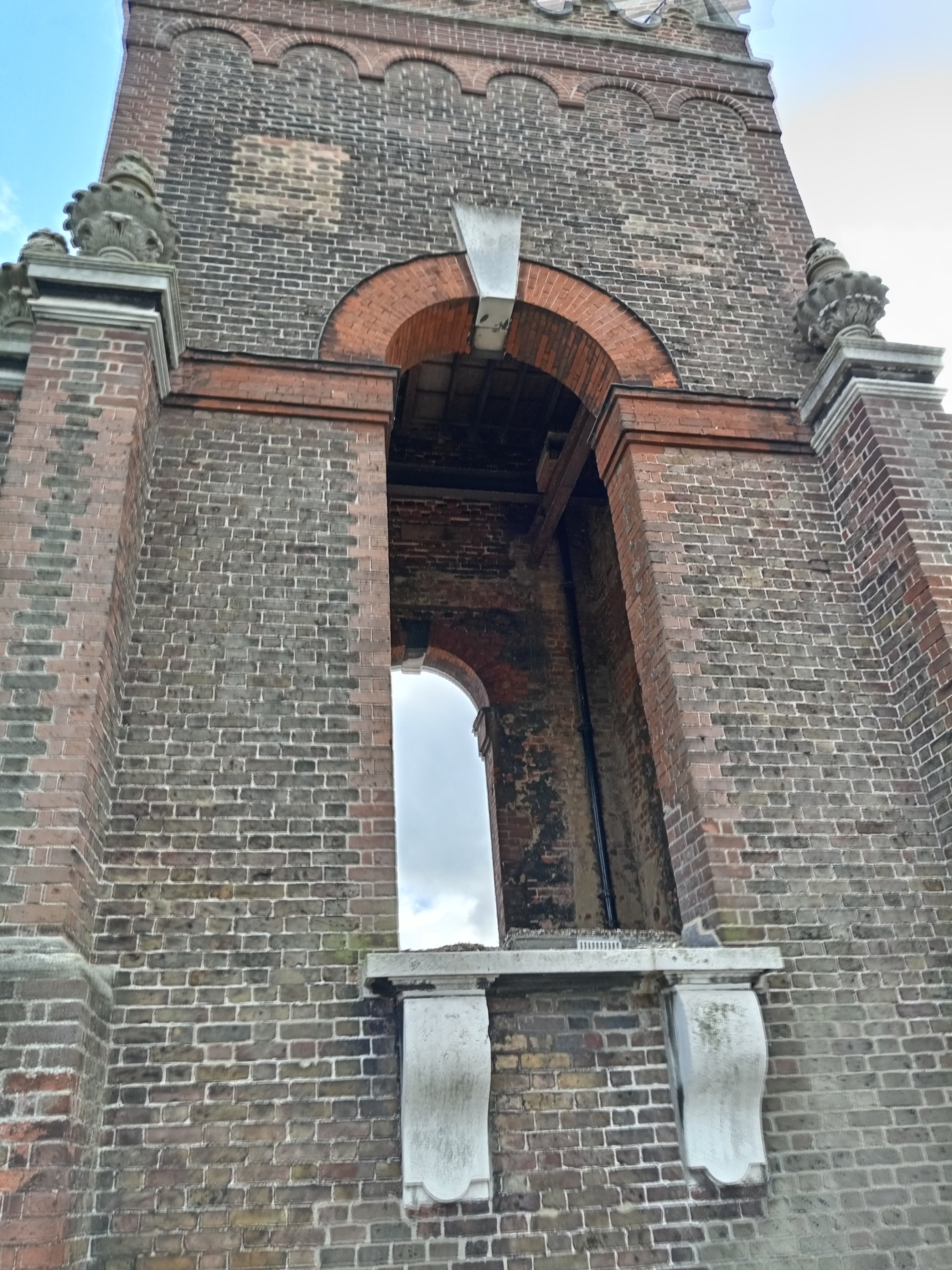 Today, we vested what is known as the ‘Carshalton Water Tower’. This is situated in the grounds of what is today an exclusive ‘Catholic’ School for Girls (St Philomena’s) – but in the past this was the country estate of Sir John Fellowes and his family during the 1700s. Although effectively existing on private ground – for a few Sundays a year – this ‘Water Tower’ is open for inspection by the general public (obviously when NO students are present). The ‘Water Tower’ was an experiment in the gathering, channelling and providing of running water to the nearby mansion house! The ‘Water Tower’ is something of a ‘folly’ – as it ressembles a Church spire or a military fort! Water cleaned by the natural process of flowing through chalk and gravel would be gathered from nearby streams and fed through a water-wheel up to the top of the tower – where gravity would be used to ‘drop’ the water through the numerous pipes heading in different directions.