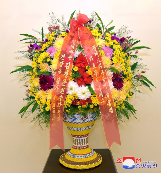 Pyongyang, October 6th, 2023 (KCNA) — Respected Comrade Kim Jong Un – on Thursday – received a floral basket from Mahmoud Abbas, the President of the State of Palestine, on the occasion of the 78th founding Anniversary of the Workers’ Party of Korea!
