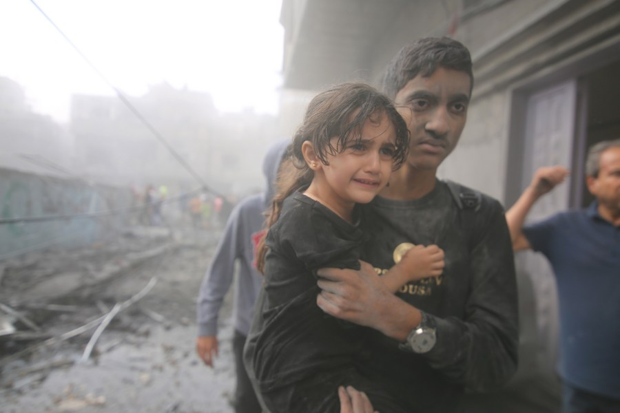 GAZA, Oct. 12 (Xinhua) — The 35-year-old Farid Abdul Halim Mousleh thought that escaping the fierce bombardment on his town of Beit Hanoun, north of Gaza, would spare his family from the ongoing Israeli air strikes on the coastal enclave that have lasted for six days.