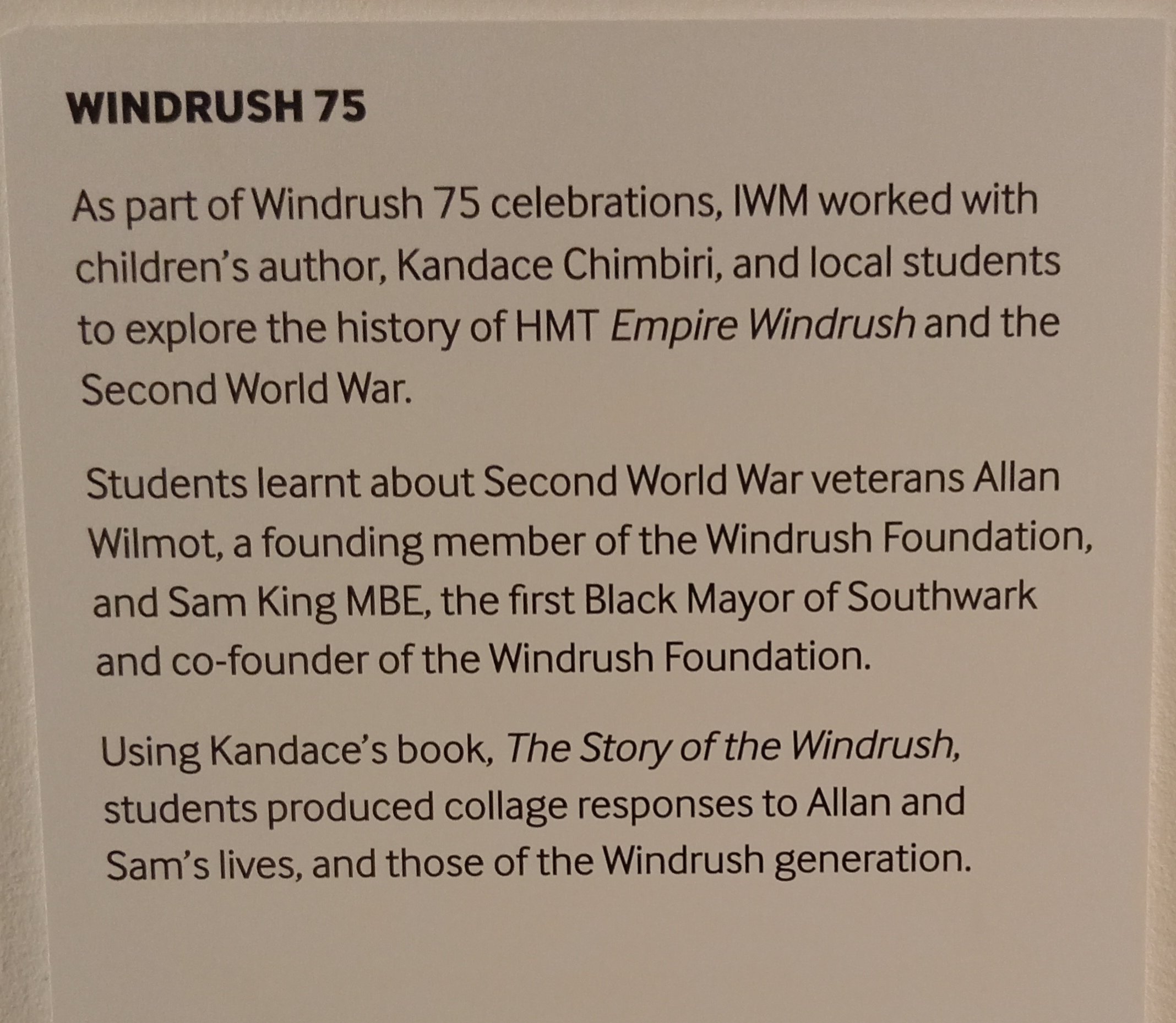 When we entered a back corridor – slightly disheartened by the shallowness of the IWM coverage of WWII from an ordinary British and Chinese perspective – we were astonished to find that a ‘Black’ British art exhibition – regarding WWII – had been consigned to an ‘out of the way’ place! The corridor is both bare and bleak – the sort of place one (momentarily) traverses through to get to another place – or perhaps rest for a moment to get one’s bearings. In no civilised way should this location be interpreted as ‘suitable’ for an art exhibition – as it reeks with Eurocentric disdain! Such is the contemporary IWM and the disjointed face it shows to a general public it intends to fleece in its gift shops!