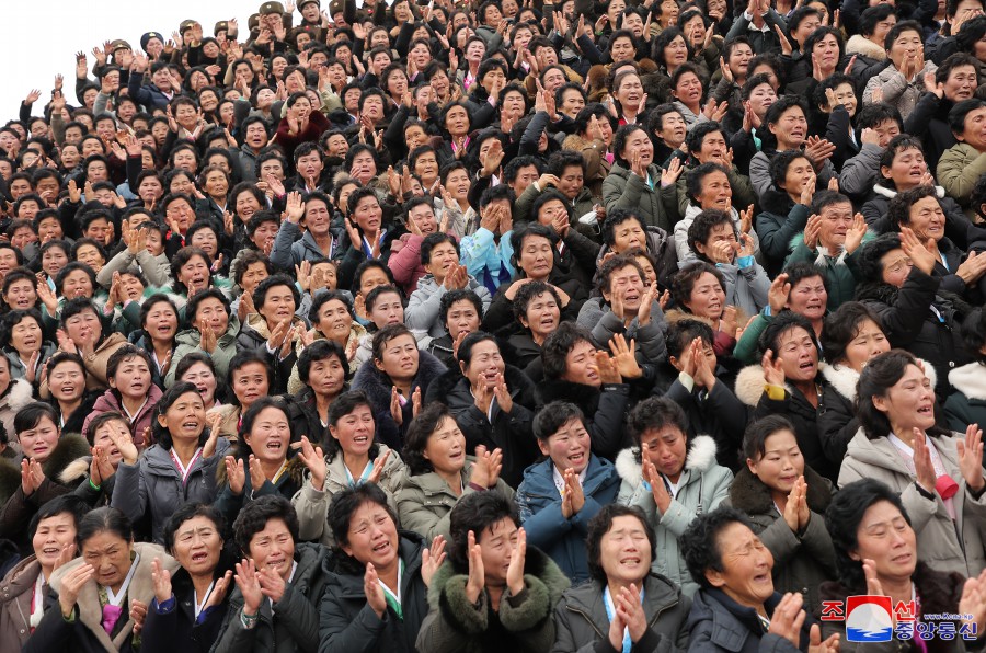 When the respected Comrade Kim Jong Un arrived at the venue, all the participants raised stormy cheers for the great father of the large socialist family who convened a grand meeting for them, who had fulfilled their due responsibility and duty of motherhood for their families and society, and shows all privileges and warm loving care for them.