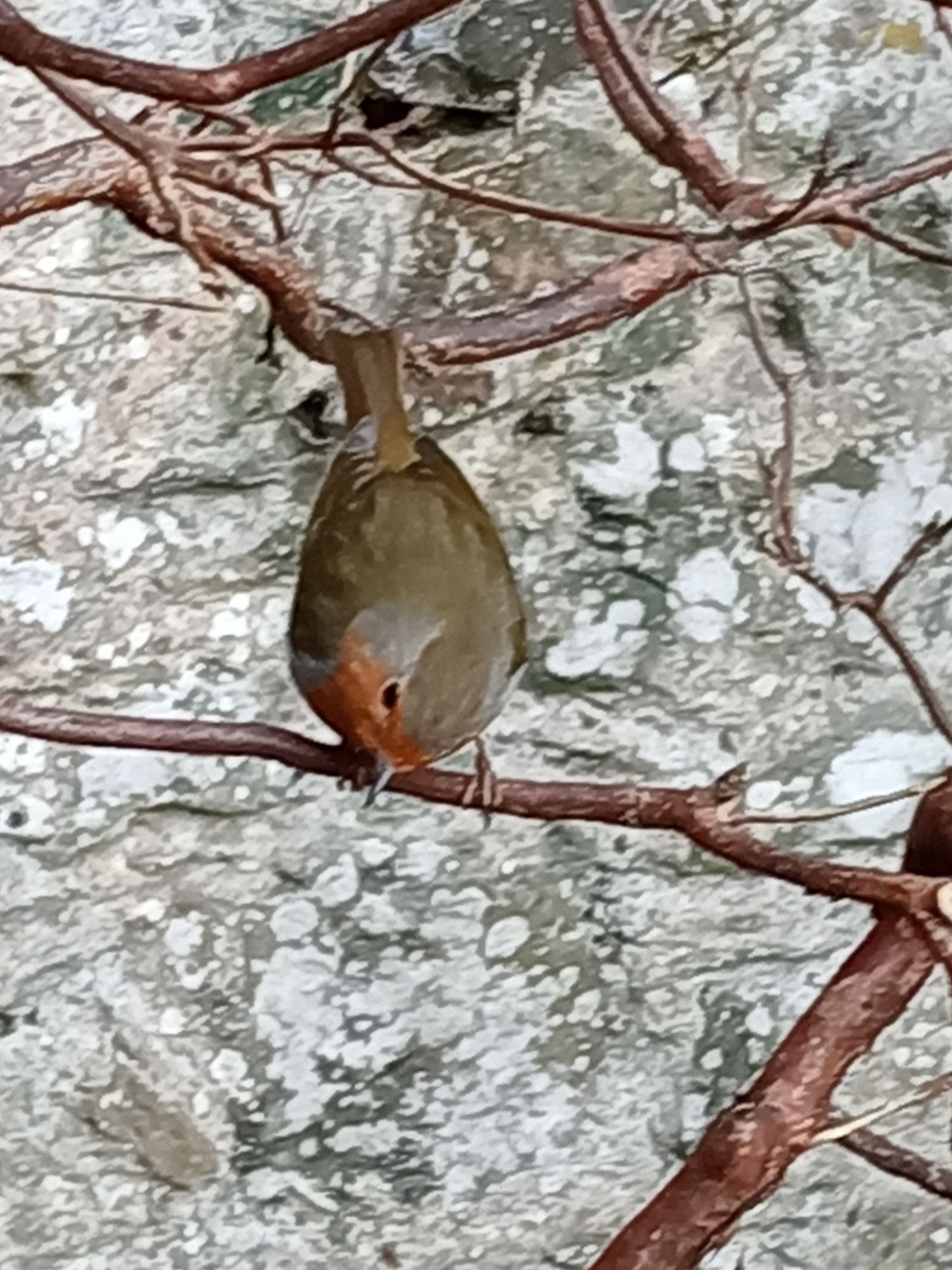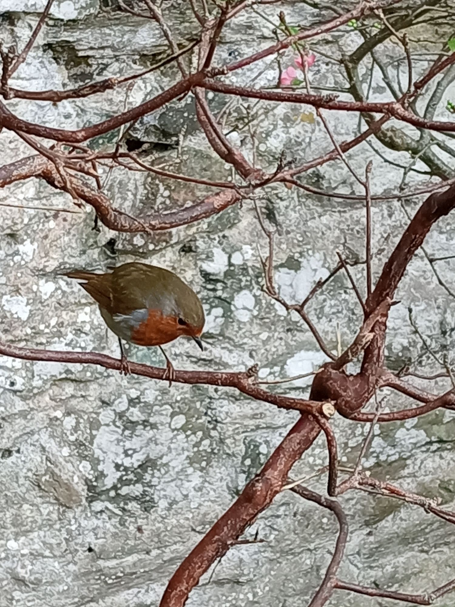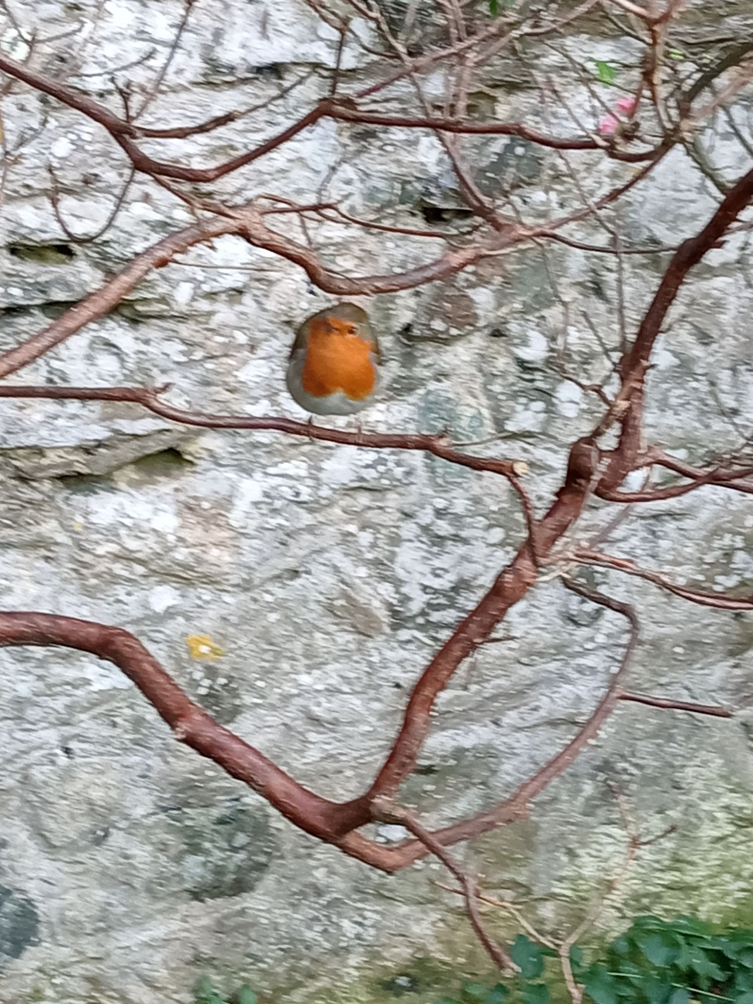 We visited the former home of Agatha Christie yesterday (28.12.2023) – and whilst walking around the adjacent gardens – we encountered an incredibly tame Robin who came to see if we were carrying any suitable food. Generally speaking, birds behave like this after generations of chicks are conditioned not to be scared of human-beings. This happens when the area is relatively free of predators and the humans are kind and considerate. Indeed, within the behaviour of these birds is the history of their interaction with humans and the surrounding the environment. Interestingly, there are photographs on display in the house that record the physical presence of family cats – but I suspect that as the house is so big and the grounds so extensive – these cats probably never ventured very far out of the house and into the gardens. Of course, Gee managed to find a cluster of bamboo shrubs probably planted by Agatha Christie – or at least one of her servants.