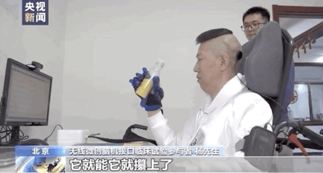 After training, Yang is now able to fetch a bottle to drink water by controlling an exoskeleton glove with brain waves and move the bottle to a designated place within 10 seconds.