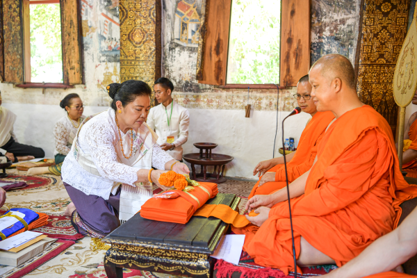The Kathin ceremony this time was conducted to perform the consecration rituals at Wat Longkhoun, including the ubosot, the dhamma practice hall, and the permanent artifacts. This is a great opportunity for both Lao and Thai Buddhists to contribute to the preservation of world heritage, maintaining its beauty in accordance with the standards of the United Nations Educational, Scientific and Cultural Organization (UNESCO). In addition, there is also participation in the transmission of Buddhist teachings through traditional Kathin ceremonies, along with support for the conservation of cultural traditions within the ancient capital city of Luang Prabang to endure over time.