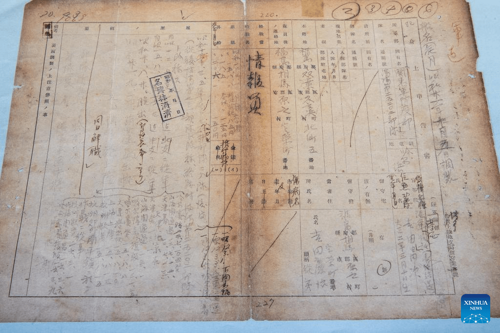 HARBIN, May 4 (Xinhua) — A document containing detailed information about military personnel from Unit 731, a Japanese germ warfare unit during World War II, was unveiled for the first time in Harbin, the capital of northeast China’s Heilongjiang Province, on Saturday.