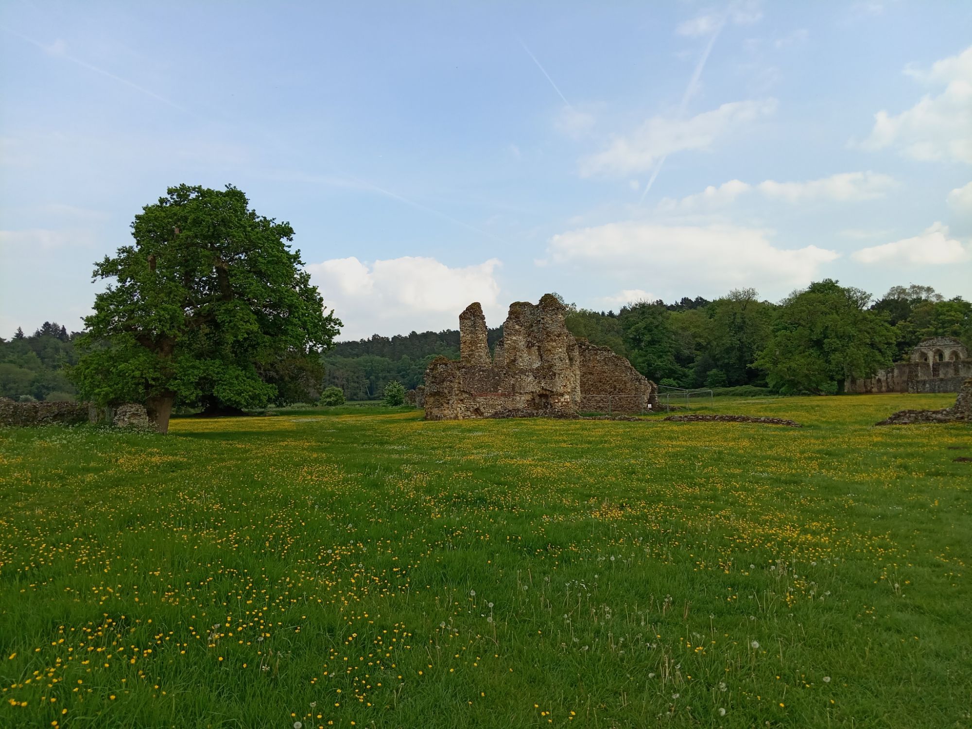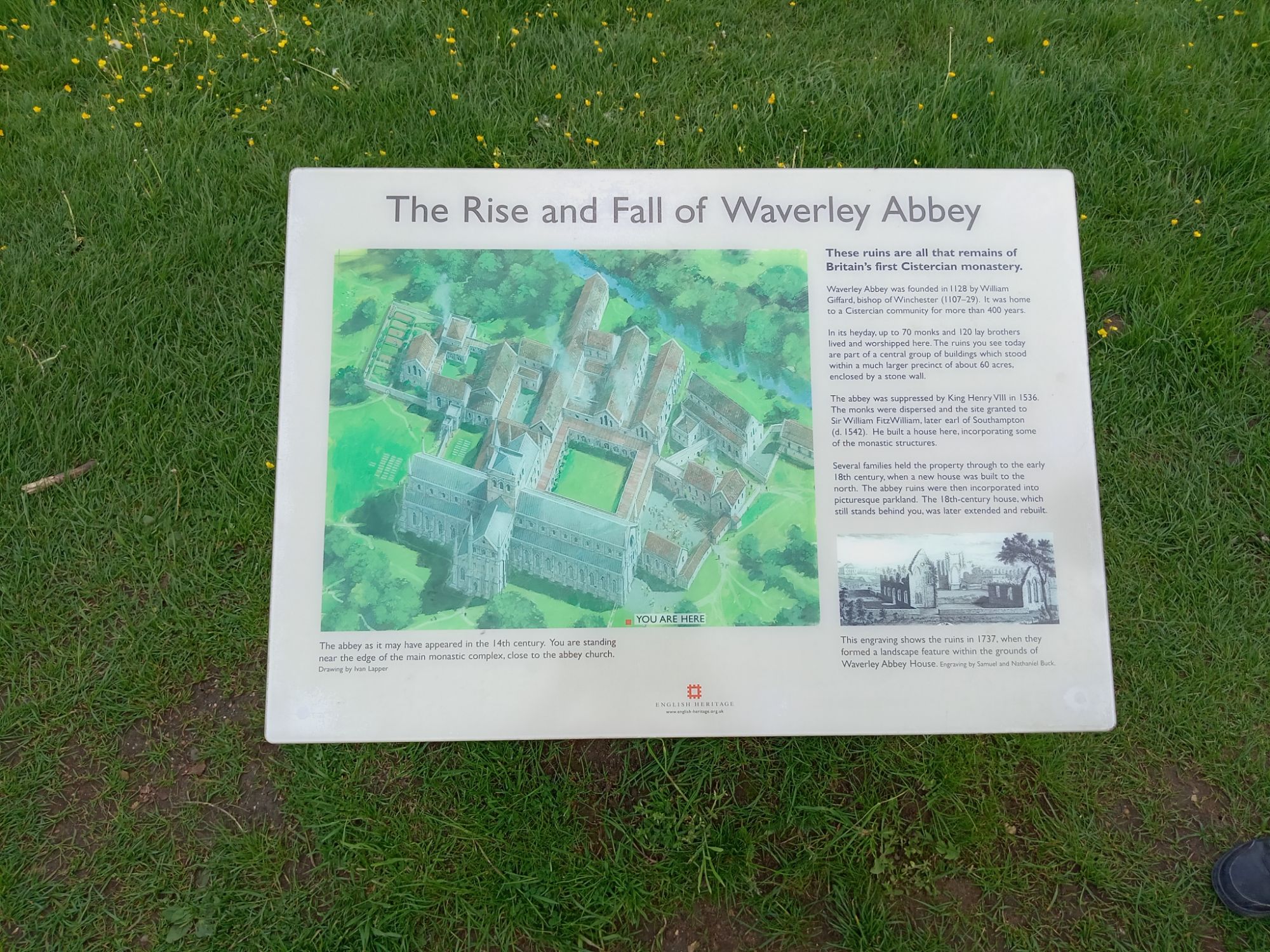 We have visited this beautiful area a number of times over the last ten years or so – since discovering its existence. Indeed, I once wrote a published article about the Home Guard (WWII) Gun Emplacement which still exists at one end of the River Wey (by the entry gate to the grounds). We think the information board above might be a new edition – as we do not remember seeing it before. We certainly had no idea about the actual history of the Abbey and grounds.