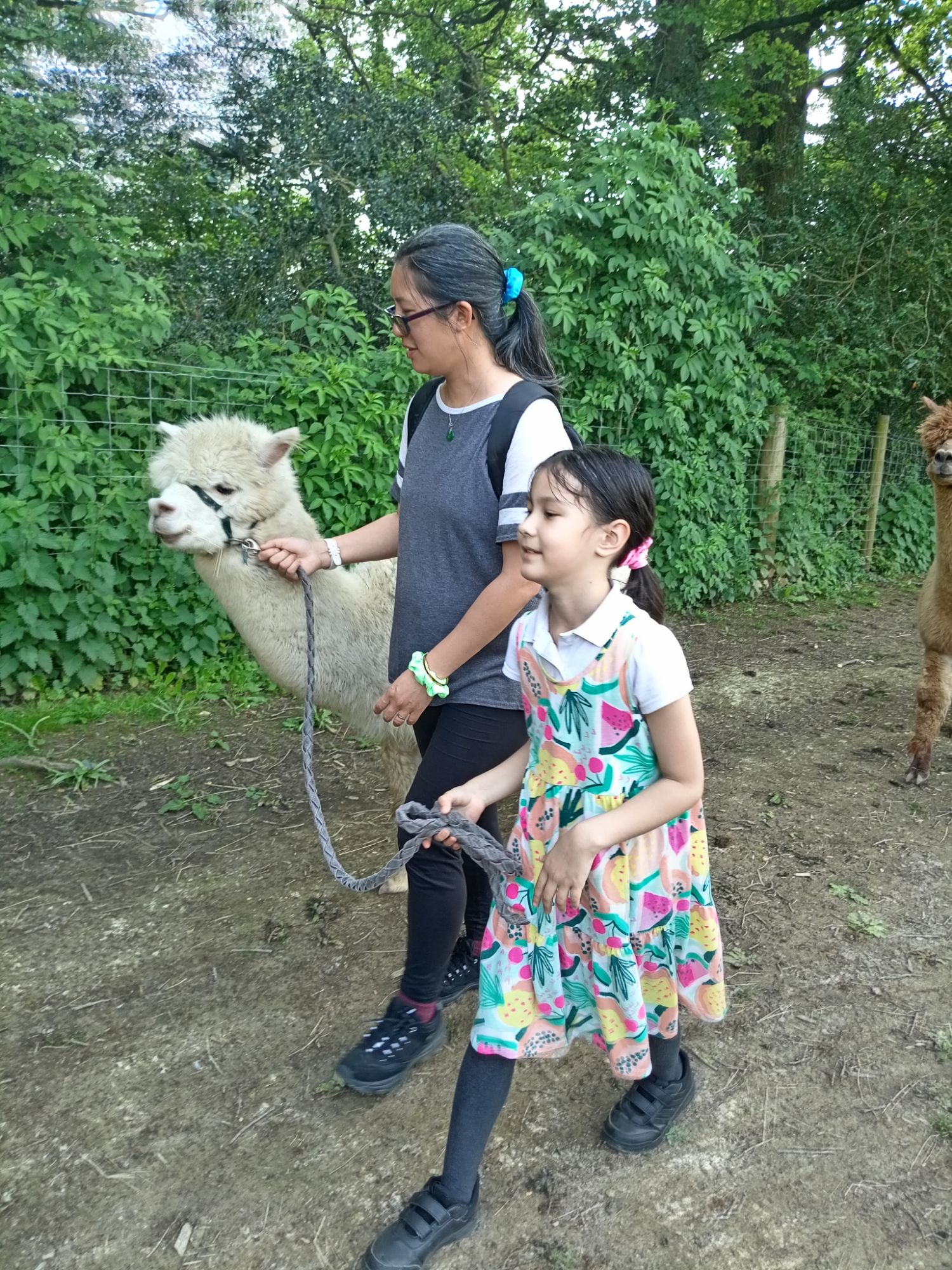Although we initially arranged to walk three Alpacas between the four of us – it soon became apparent that two was more than enough to handle – as Kai-in was too young to handle one of these animals by herself. Mei-An, as a 12 year old – handled her Alpaca (Caesar) very well – before I took over at the half-way point. Gee and Kai-Lin walked “Percy”. Alpacas are herd animals and do not like being separated or individually man-handled. They often spit and will stand still if they do not like what is going on – so steady as you go – like sailing a ship on unpredictable waters! We think Kai-Lin’s brightly coloured dress might have alarmed the Alpacas as they seem slightly agitated when Kai-Lin came to close. Still, she did quite well regardless, and none of the Alpacas “kicked” – as these backward kicks to human groins and chins have been known to be quite deadly in the past!