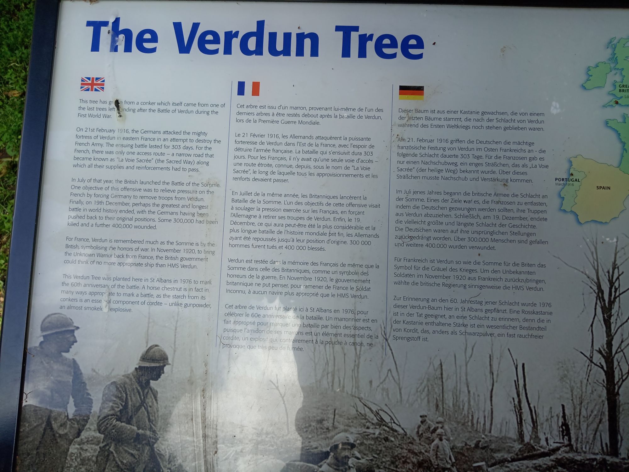 We visited St Albans Cathedral (Abbey) yesterday – travelling on the Thameslink Train from West Sutton to St Albans City (a journey of around 90 minutes). Prior to the 1539 Dissolution – St Albans was one of the most important Benedictine monasteries in England (perhaps Europe) visited on numerous occasions by England’s many Kings! I will write about this further in subsequent posts, however, whilst focusing today on the “Verdun Tree” – an object of some considerable beauty (and sadness) which commemorate the 1916 Battle of Verdun. This was a bloody battle between France and Germany during WWI which cost the lives of some 700,000 victims in total – with 305,000 killed (and missing) – and another 400,000 wounded!