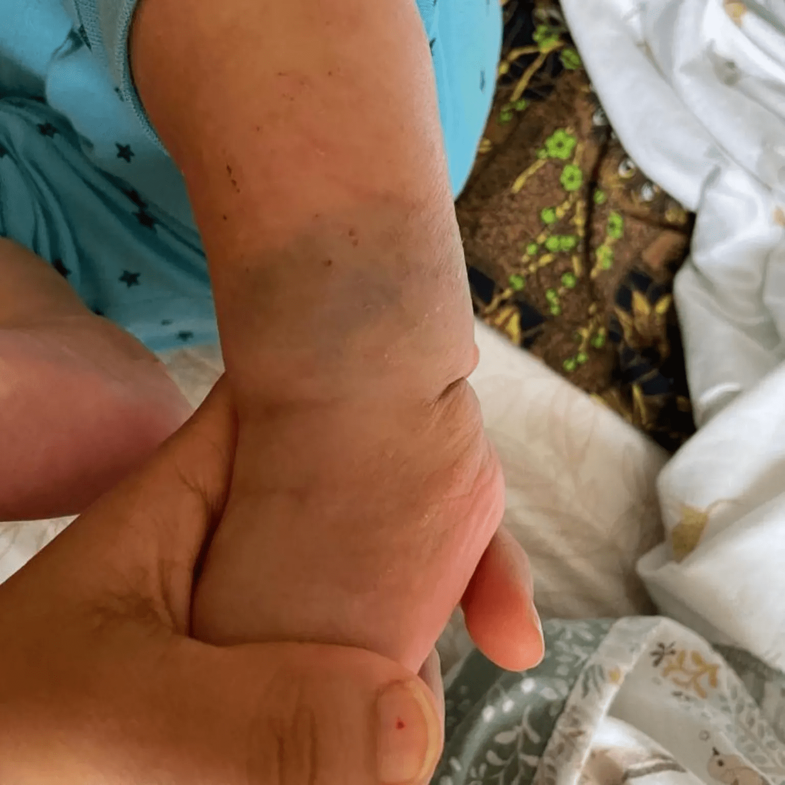 A series of scans later showed no skeletal injuries and a dermatologist determined the markings were blue spot and not bruises. Police confirmed no assault had taken place.