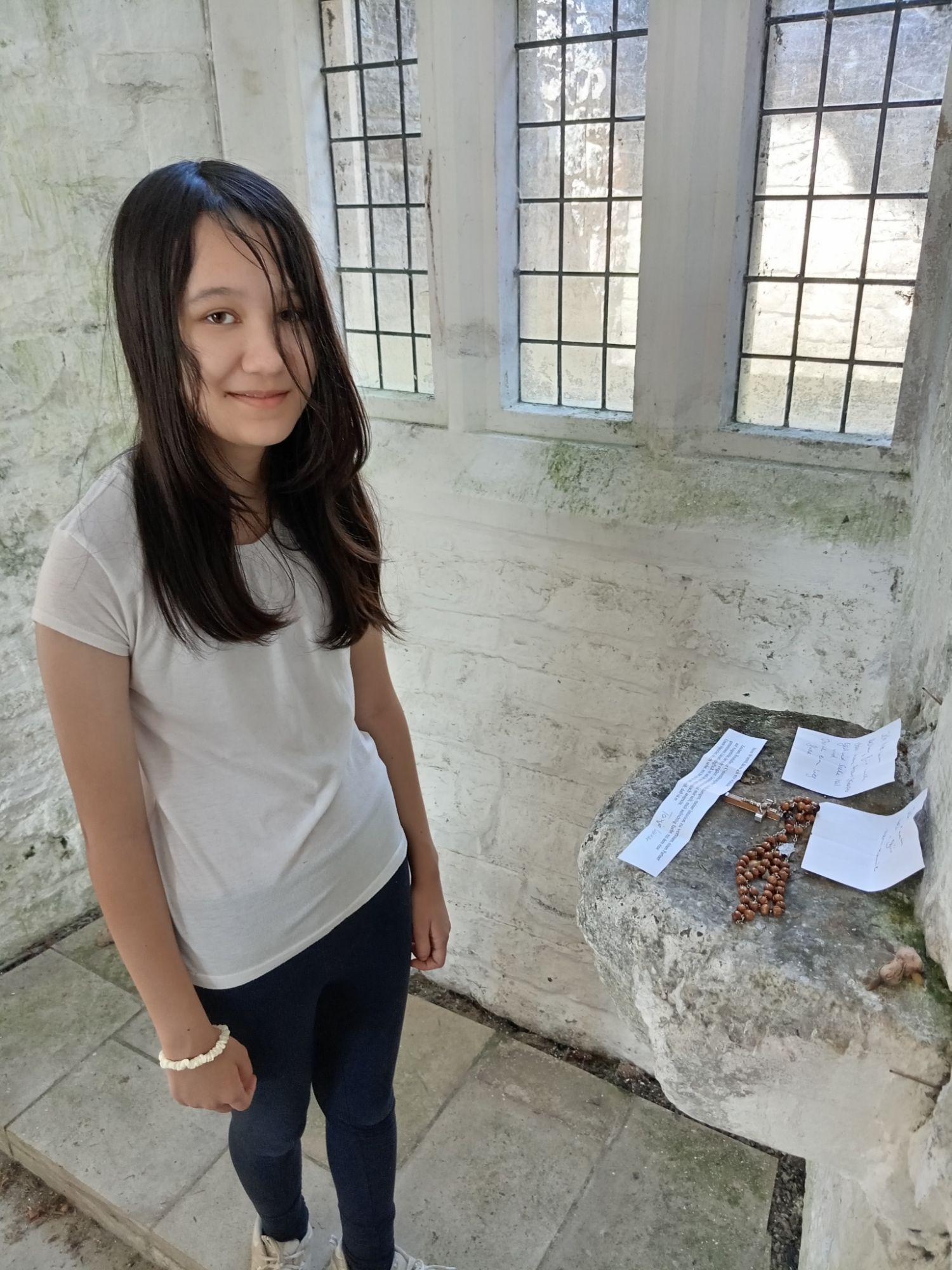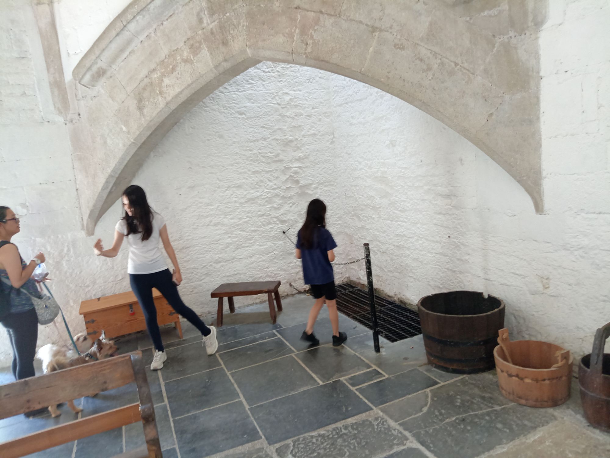 Today, an ad hoc “Wishing Well” has developed in one of the corners of the room. This was probably a drain or perhaps some type of cooker – but in modern times visitors have taken to dropping coins down through the covering grill – and making heartfelt requests in the form of prayers and good wishes. Our daughters asked for good health to be bestowed upon Nana (Diane Wyles), Granddad (Peter Wyles) and Charlotte (my younger sister)! The currency observed spans the globe – which demonstrates the universal appeal that Glastonbury holds. This is not necessarily “religious” (although religion is important for many) – but rathe “spiritual” in nature – the latter category being far more inclusive and all-embracing!