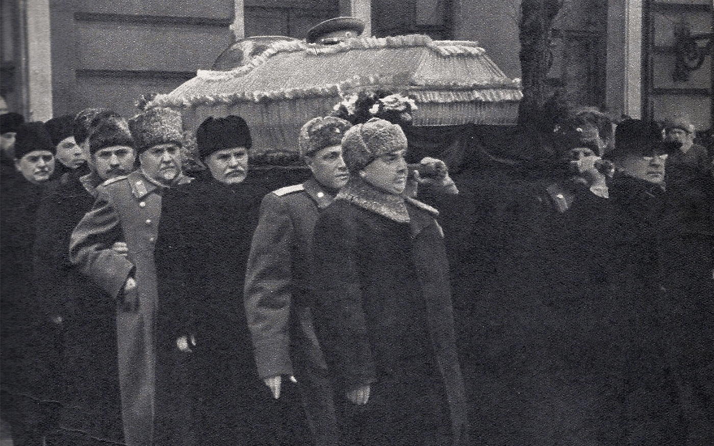At about 10 o’clock in the morning, mourning wreaths and Stalin’s awards began to be carried out of the House of Unions. At 10:15 a.m., the closest associates (Beria, Khrushchev, Mikoyan, Kaganovich, Molotov, Bulganin, Malenkov and Voroshilov) took the coffin in their arms and carried it to the exit from the building. At 10:23 a.m., it was installed on a covered artillery carriage.
