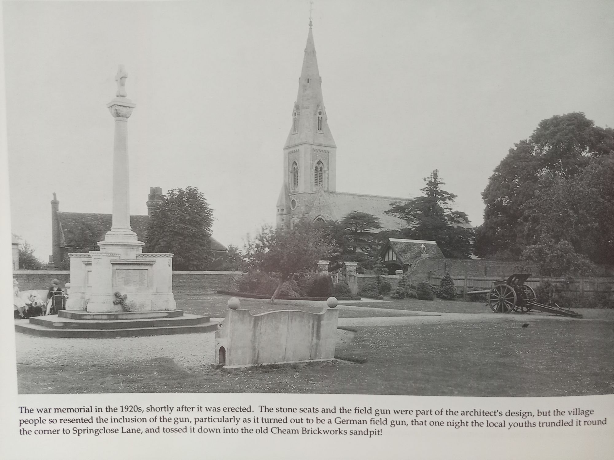 In hundreds of places all over the UK – Memorials were established to remember the hundreds of thousands of British military personnel who had perished during WWI (1914-1918). Oddly, the casualties suffered during the British invasion of Soviet Russia (1918-1921) are not included on these Monuments. It seems that the British government distributed excess artillary guns to the cities, towns, and villages of the UK, presumably as a means to “remember” the fallen. These armaments were often incorporated into grand building schemes designed to honour the dead. After suffering nearly a million casualties, the British public were now sickened by war – with many opposing the inclusion of these “weapons” being situated near the names of their deceased love-ones. This was certainly the case in Sutton and Cheam – with people resenting the possibility that the “German Field Gun” allocated to the place might well have been used to kill their relatives during the war. When students vandalised the gun in Cheam – this action was met with support by the local population – and the Police did not pursue the local youths responsible.