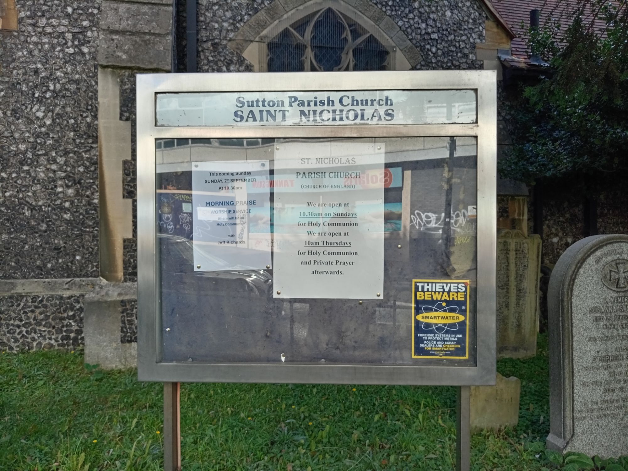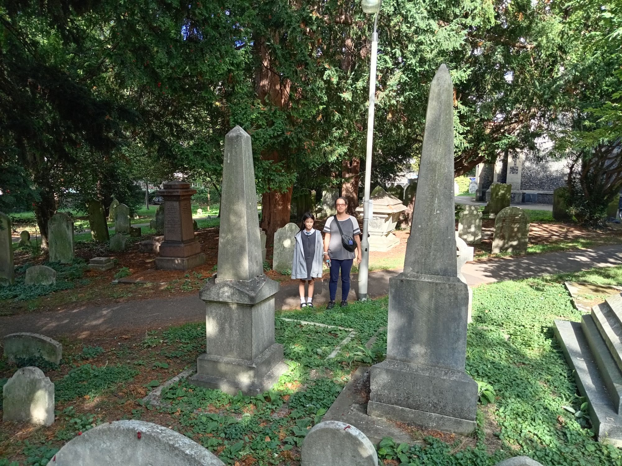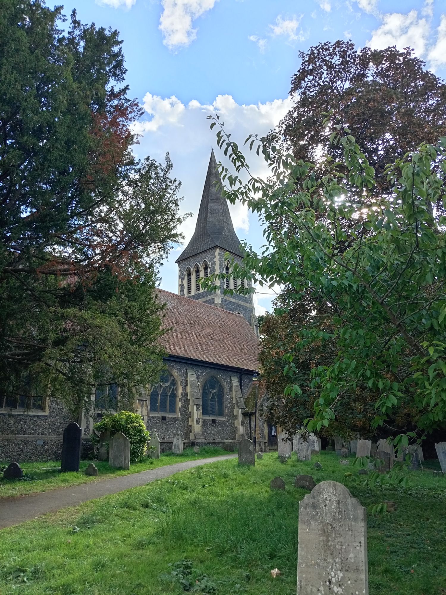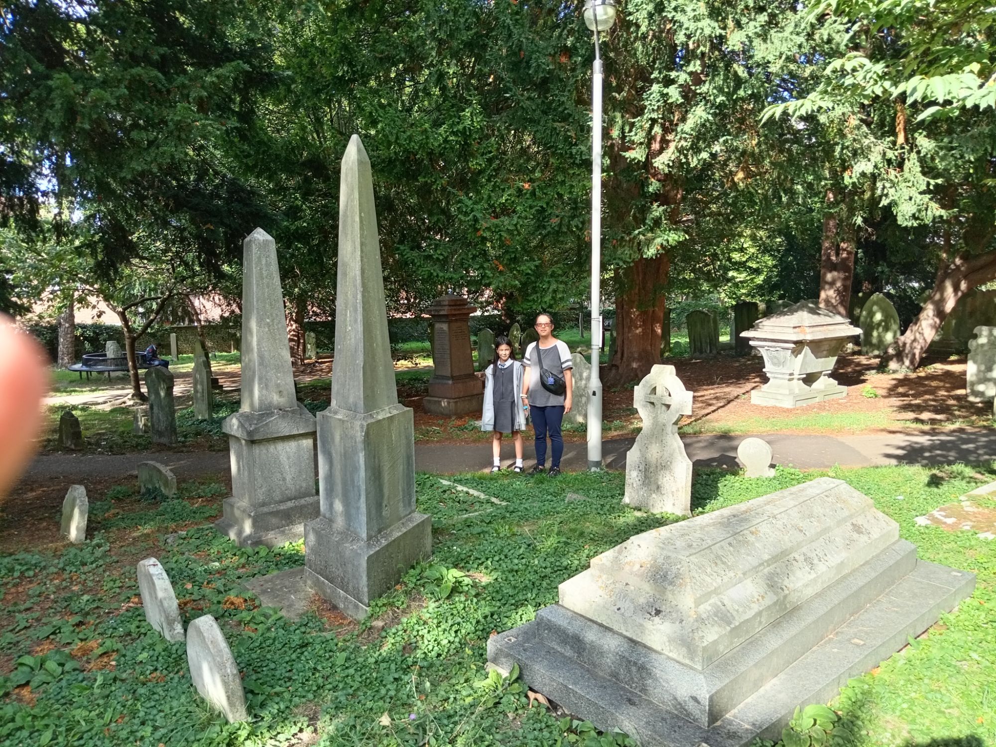 We had to travel quickly into Sutton Town-Centre today – to purchase a new pair of shoes for Mei-An (our eldest daughter). As she is now a teenager, she quite often walks up hill to school each morning – although she is always picked-up by car – and occasionally driven to school. This all depends upon our working shifts and timings, etc. Either way, we parked outside St Nicholas Church and were able to take a late Summer’s stroll around the graveyard. Sutton is now part of Greater (South-West) London (formerly East Surrey) – and Churches are viewed (rightly or wrongly) as a type of museum, although I think St Nicholas is still in use despite Church attendance being very small across the UK. Our view (as non-Christians) is that these places should be properly and respectfully preserved – and the faithful be allowed to worship in them. On the other hand, as the Church of England is funded through general taxation (regardless as to whether the worker is Christian or not) – ALL people (providing the behave) should be able to frequent the building. We also love the squirrels, pigeons, rats, and mice which live in the graveyard.