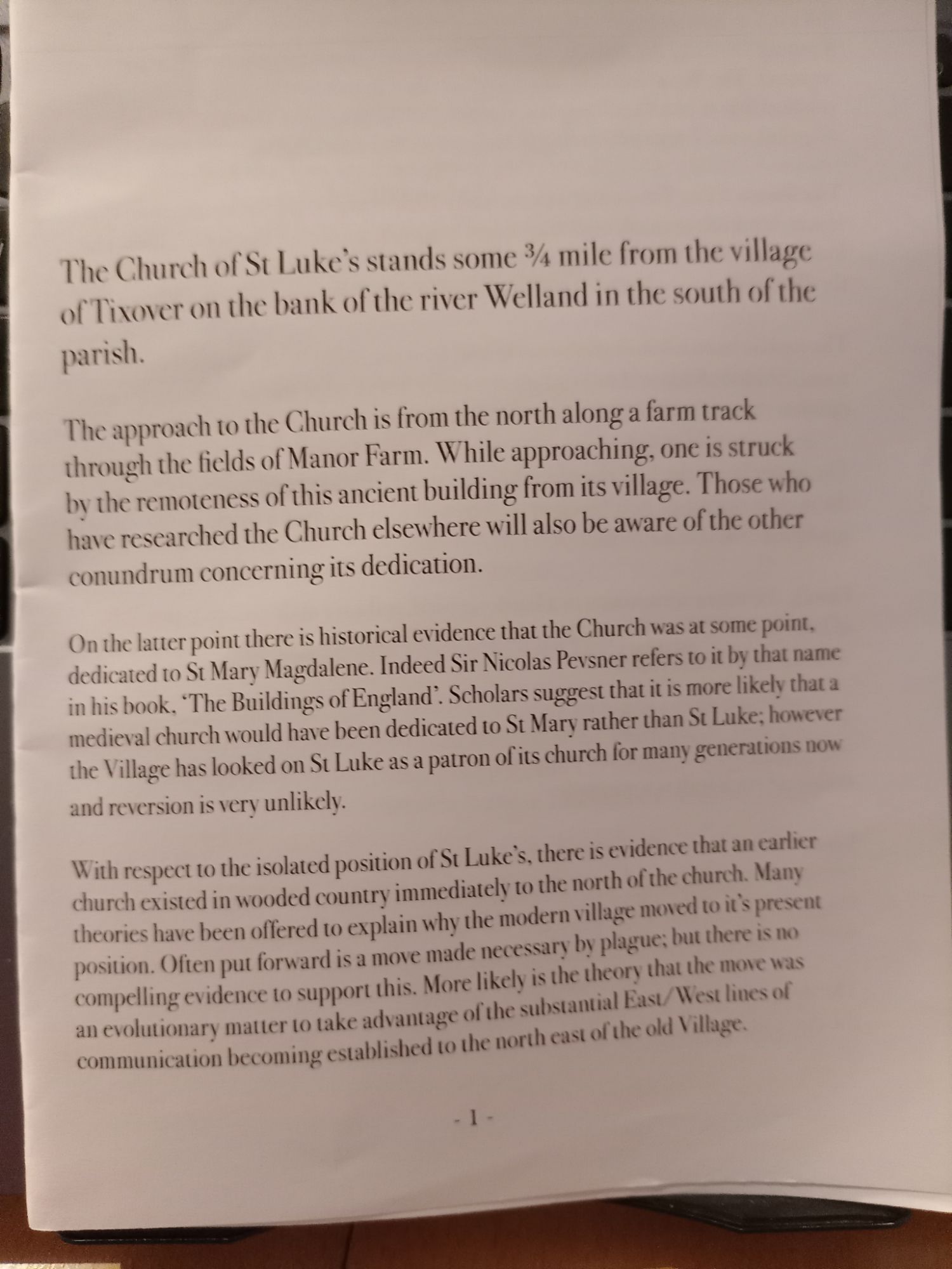 Tixover is just over the bridge at the Western boundary of Duddington – and is about a mile or so down the road. Tixover (Old English meaning “Kids eat grass on a slope” – kids being young goats). Tixover is essentially a working farm about ten houses – with the Church being situated down a dirt-track – quite literally “in a field”! We visited again on Sunday 25th October, 2025, with our cameras and captured the following images. What I like about this Church is that it is simplistic and austere – completely in accordance with the principle of “Anglicanism” and “Protestantism” – which cleared the altars of all the clutter associated with Roman Catholicism. All the divine principles of Jesus Christ are upheld – with none of the superstition associated with the Vatican:
