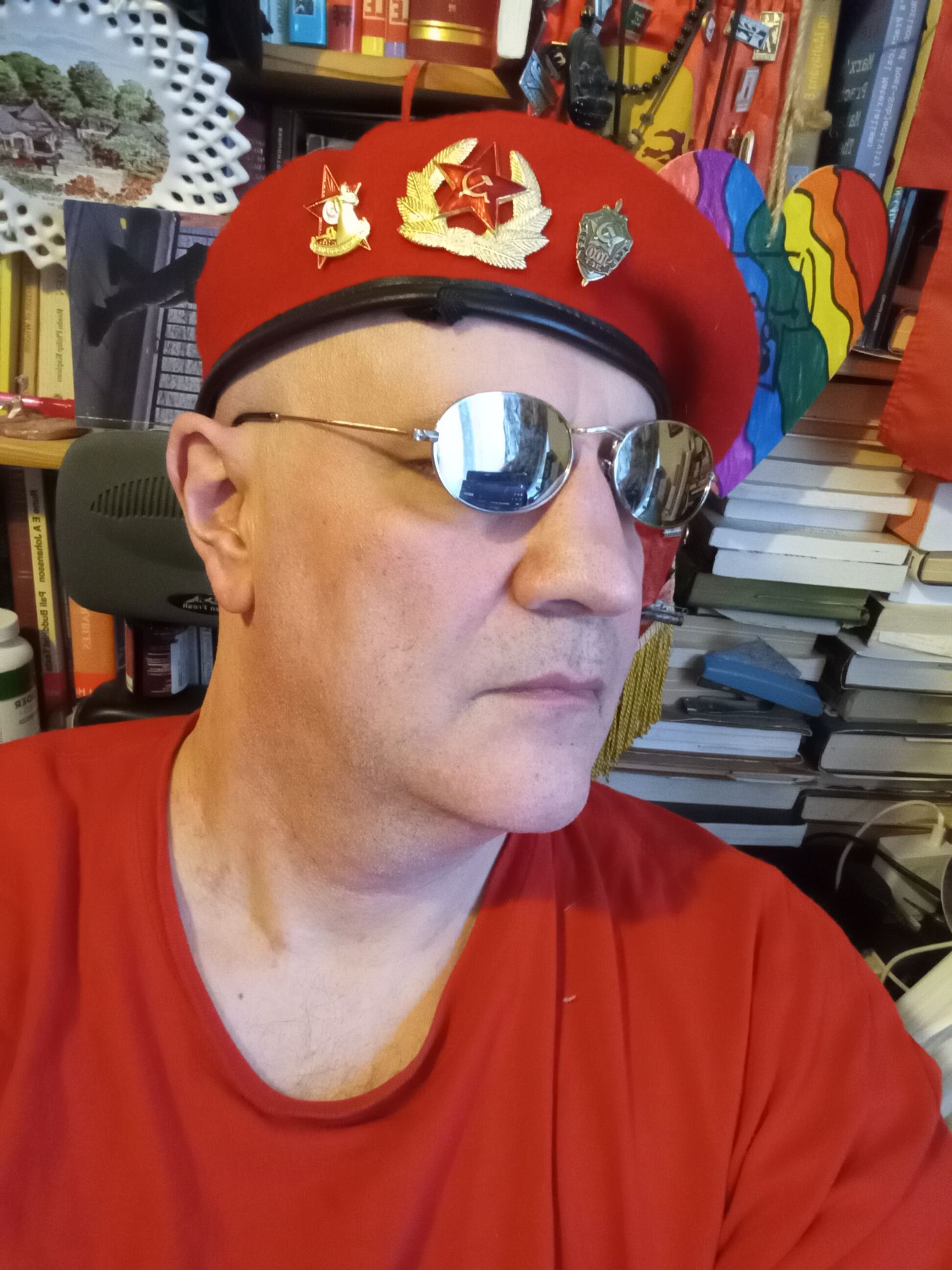 A kid just shouted-out “Look! It’s Captain Sensible!” So, you know how old I might be! These are my basges – the result of a mis-spent youth. I jest – they are my actual badges – but from a youth well-spent. I have moved in the cracks of capitalist society – nipping in and out the Socialist World.