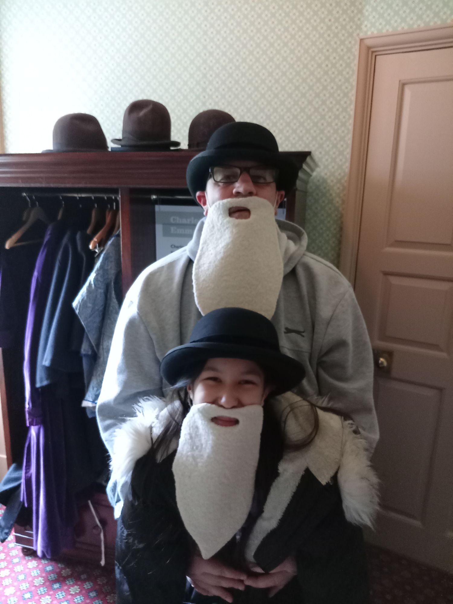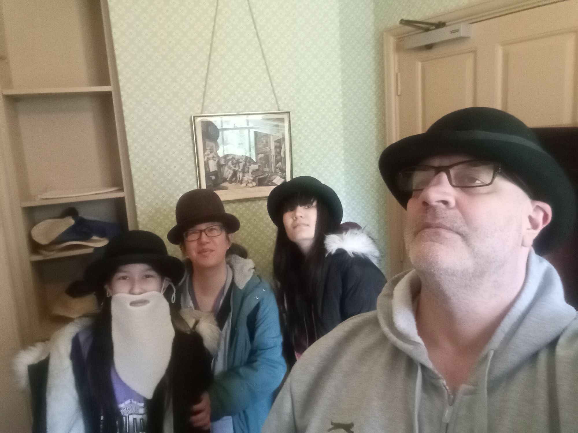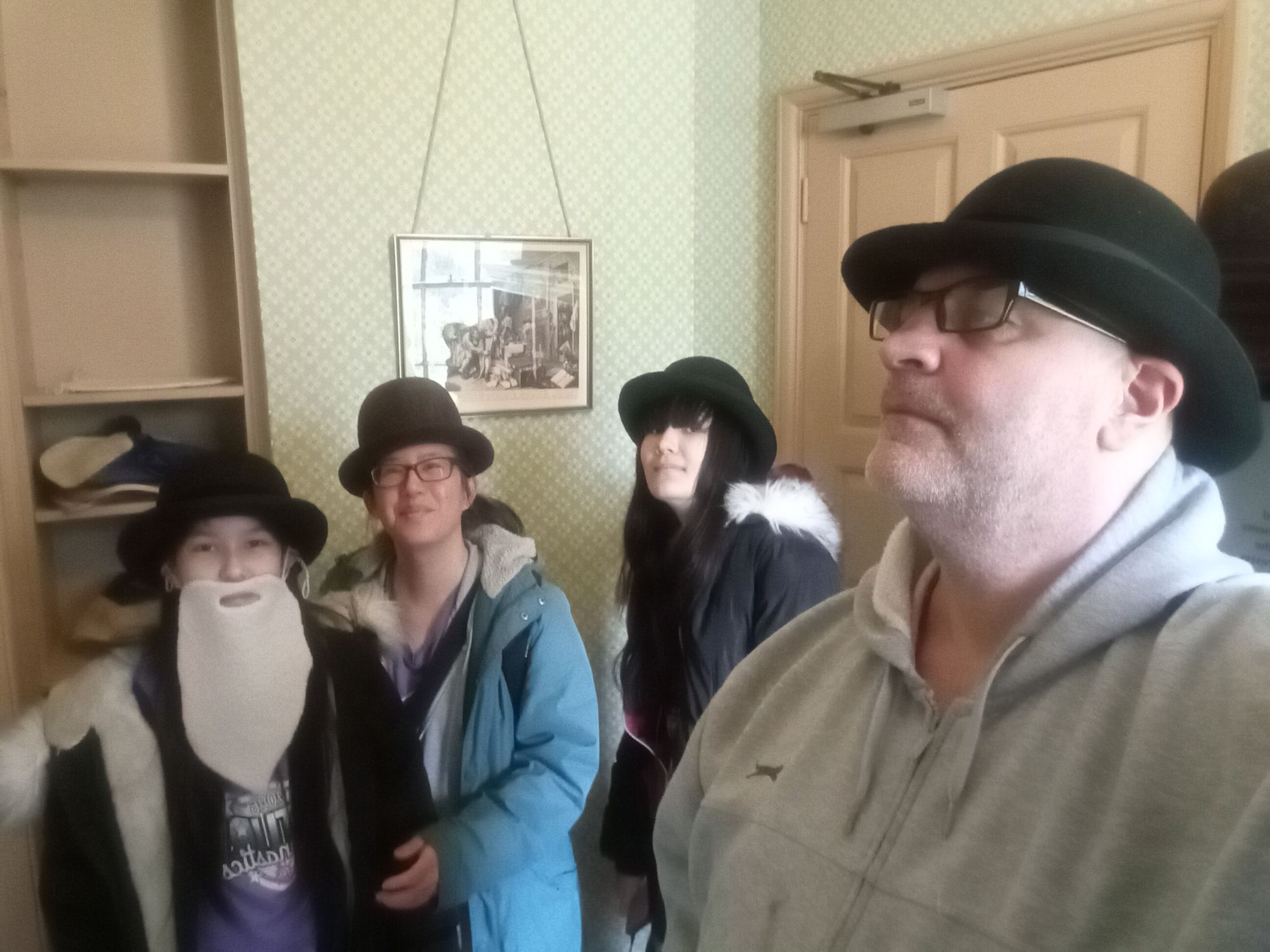 We have visited Down House many times in the past – as it is situated about an hour from where we live in Sutton. It is a beautiful manor house situated in Kent – with a large garden full of all the natural experiments Darwin developed over many decades – as he slowly but surely correlated the information he had gathered in his youth aboard the HMS Beagle. He further developed all this by closely observing how nature functioned and unfolded in his native England – realising that environmental conditions (natural selection) creates changes in living organisms so a to better enhance the chances of a) survival, and b) reproduction. Whether occurring in South America, the Pacific, or the UK, the evolutionary forces acted in exactly the same way. Of course, what is near at hand to each of us becomes the “familiar” – and what is far away becomes the “unfamiliar”. However, this is just a matter of sensory “immediacy” – the point that Darwin made is that there is a greater principle underlying it all that we, as individuals, must strive to appreciate and understand. As part of this process, myself, Ge, Mei-An, and Kai-Lin all donned bowler hats and fake beards – so that we could – even if only for a moment – become Vharles Darwin!