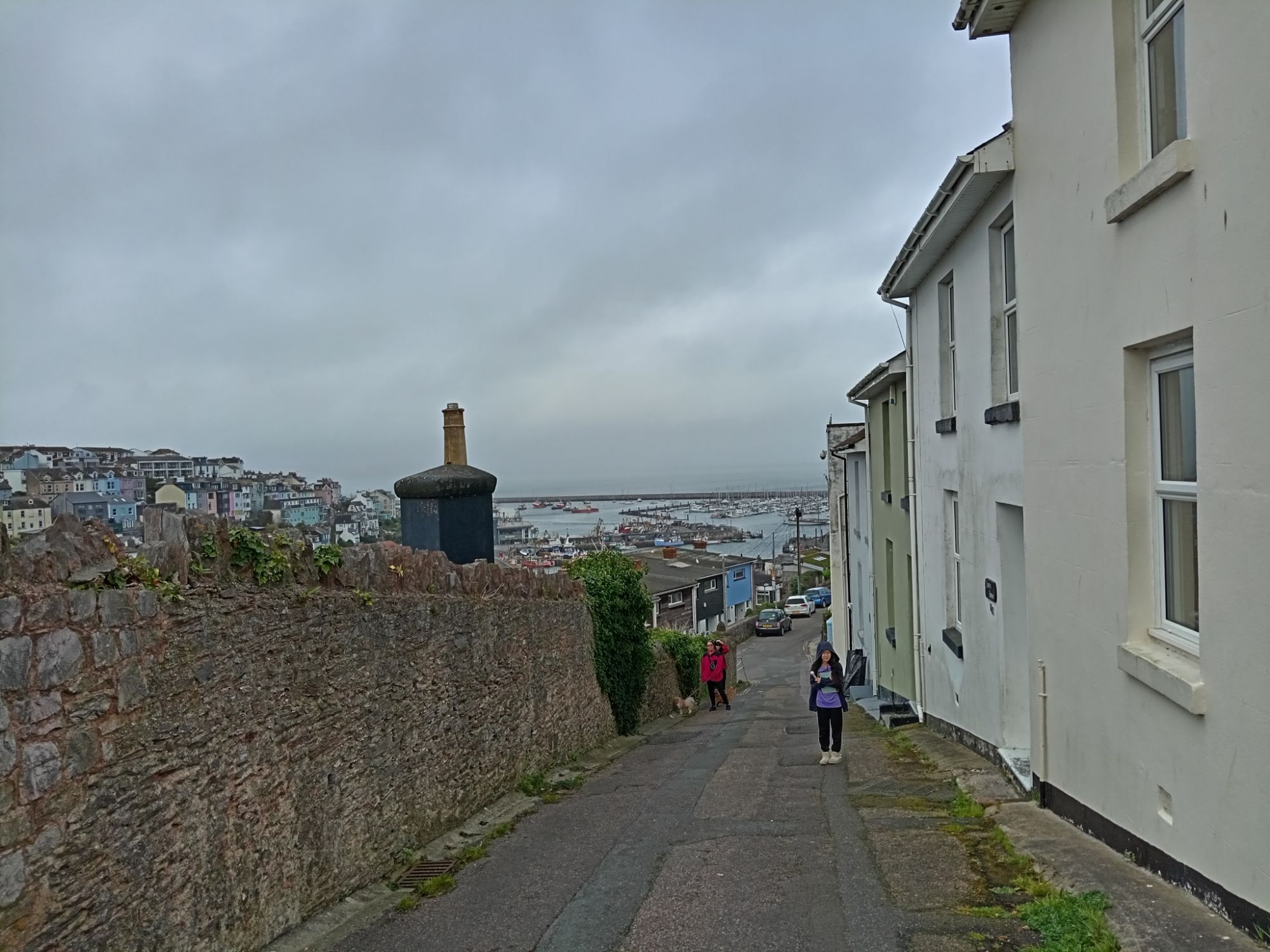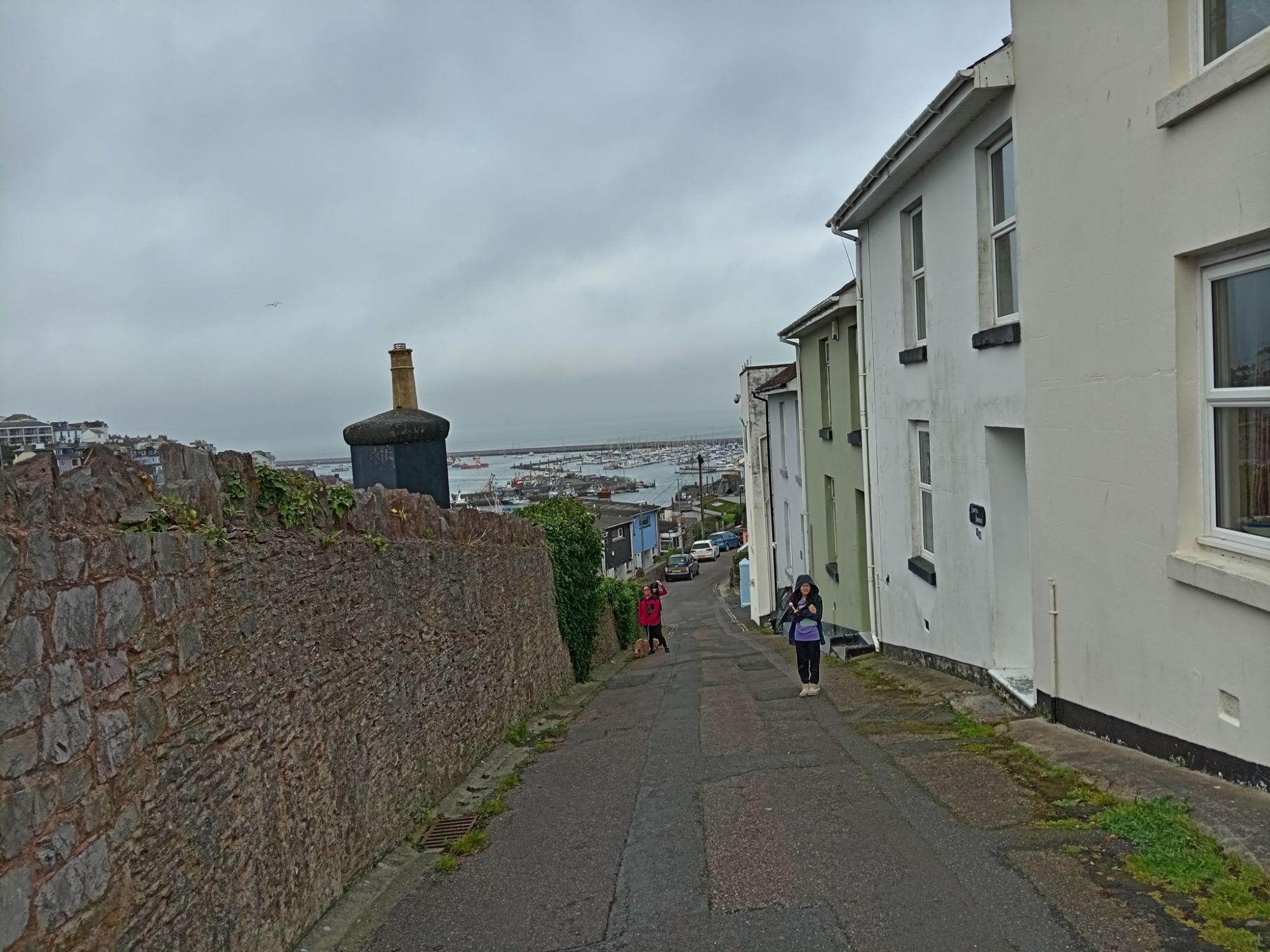 We had to park our car about a mile away from the holiday home we renting for a week (28.3.2026-4.4.2026) in the Brixham (near the Berry Head) area. Inconvenient for a family brought-up in Greater London and used to everything being in arm’s reach. So be it. Gee had to park the car at the top of Wind Mill Hill – as that was the only place a parking-space was available not patrolled by militant locals who still seem to think WWII is ongoing. I jest – but one or two were a little bit prickly – commenting about “Townies” and “City-Dwellers” with “their big cars”! And so on. Still, at the end of the day, we are the visitors and we will be gone tomorrow. After carrying-out my duty – and visiting my various family relatives – I thought it would be a good idea to make a record of the journey down the hill from the parking-spot to the rented house. The view was quite beautiful and I hope I have captured our journey on foot – down a steep Brixham hill – although we could not actually find a “Wind Mill”! Come to think of it – we are supposed to be near the Brixham Army Cadet Centre – but we never found this place either! The dogs enjoy the hill walk as it is different to the relatively “flat” terrain found in Sutton. It is beneficial for young and mature dogs to carry-out hill walks or runs every so often as it is good for the inner organs and joints, etc. They love “smelling” new things as this triggers their minds in a dextrous manner.