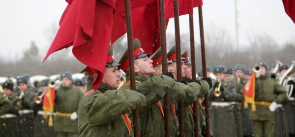 The modern, Russian Army still carries the Soviet Red Flag on parades, and the symbol of the Hammer and Sickle is a common feature of